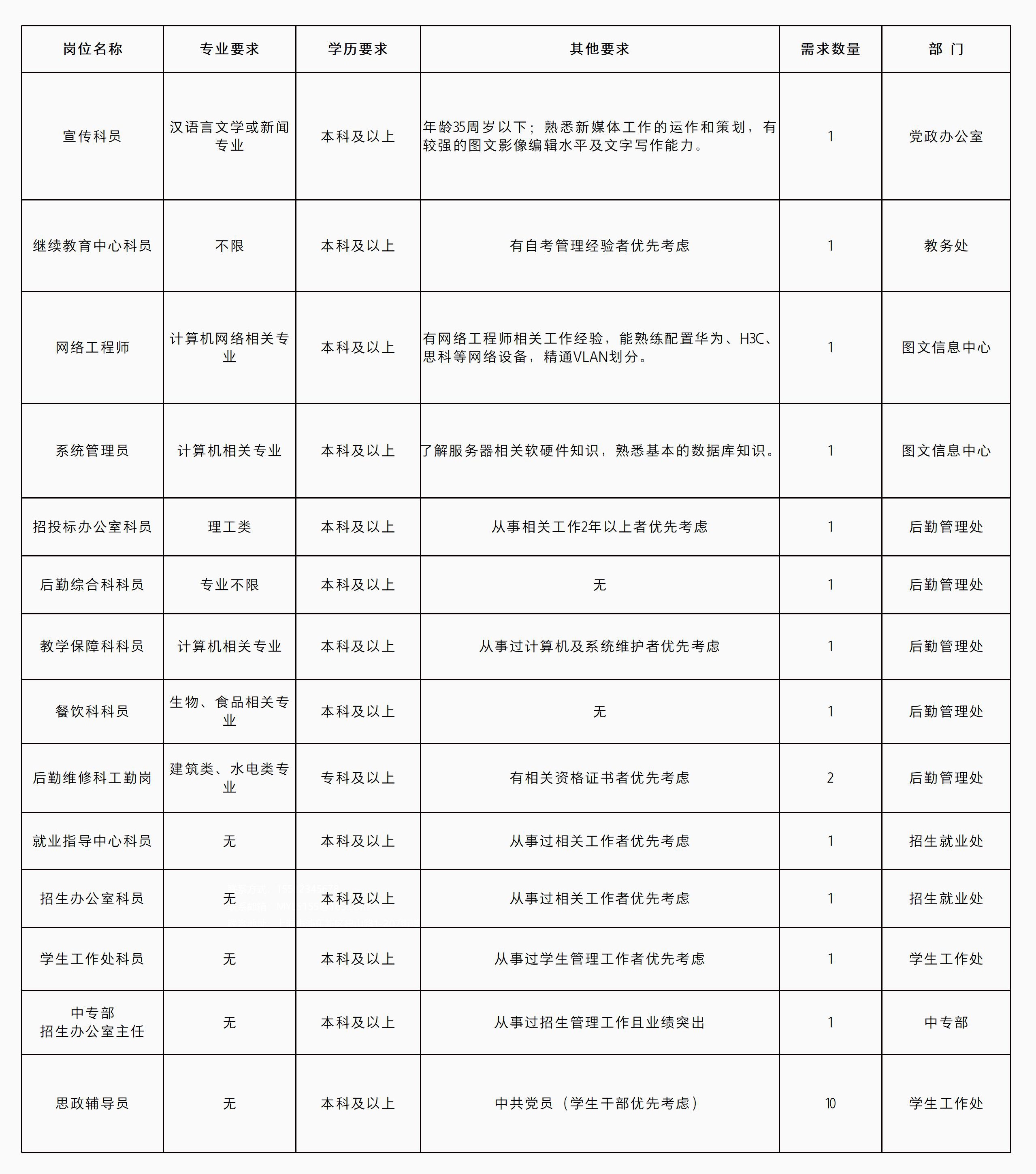 4、面试:学校将组织初审合格者到校参加面试,通过测试者安排签订用工协议。