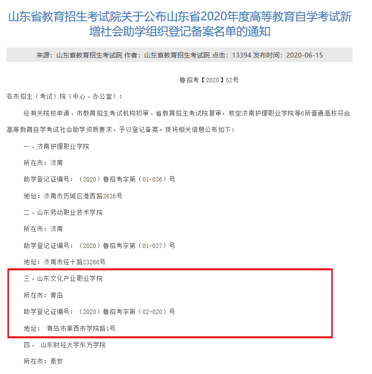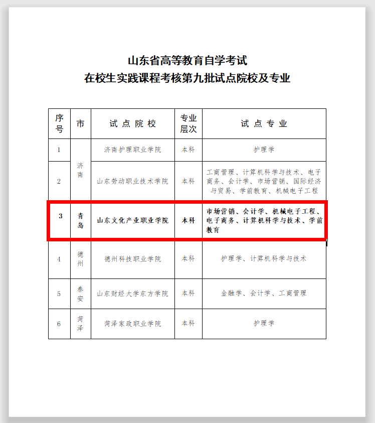 6月15日,山东省教育招生考试院发布通知,经多层评审,核定六所普通高校符合高等教育自学考试社会助学资质要求,予以登记备案,必威betway西汉姆作为青岛市唯一一所新增试点院校入选其中。