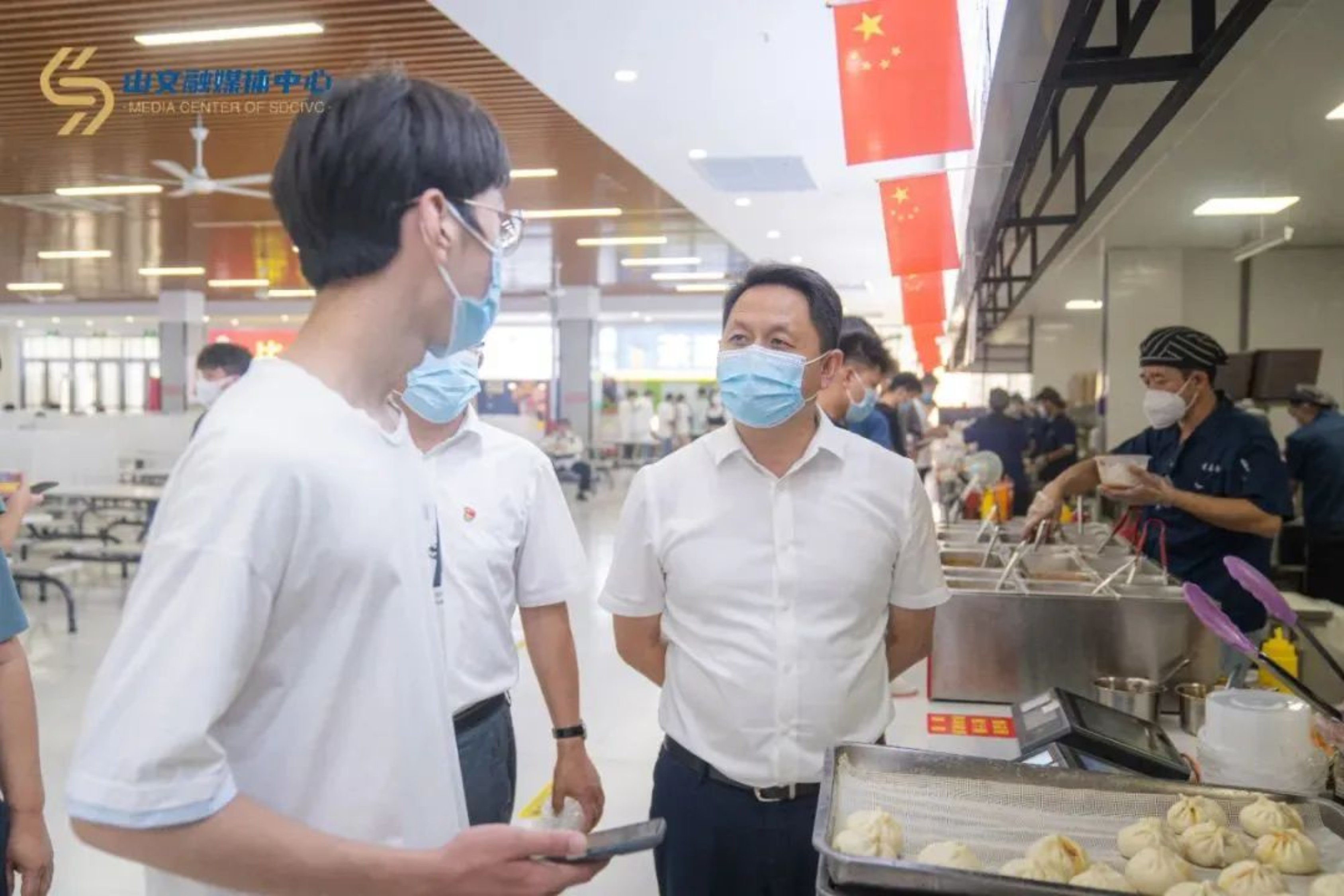校领导在餐厅与学生交流