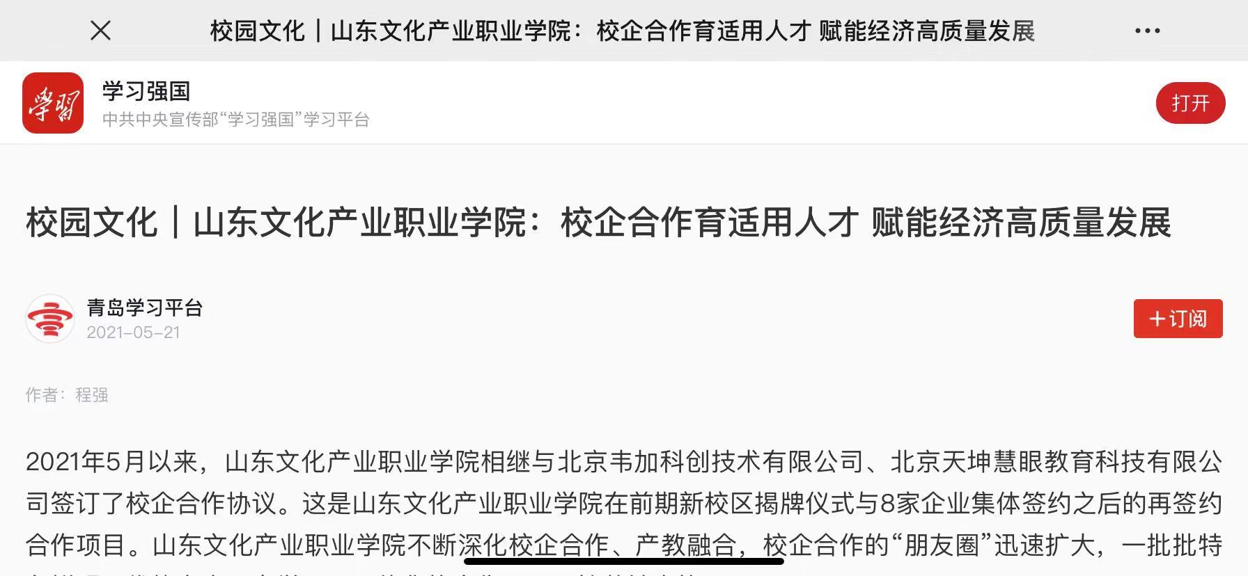 近日,人民日报、今日头条、中国工业新闻网、凤凰新闻、大众日报、青岛新闻网、青岛日报、青岛早报、蓝睛、爱青岛、搜狐新闻、教育文摘周报、中国发展网、中国都市新闻网、上游新闻等多家主流媒体报刊,相继报道必威betway西汉姆深化校企合作的典型做法,并首次登上中宣部“学习强国”学习平台,以亮丽的校企合作成绩单,向建党100周年献礼。