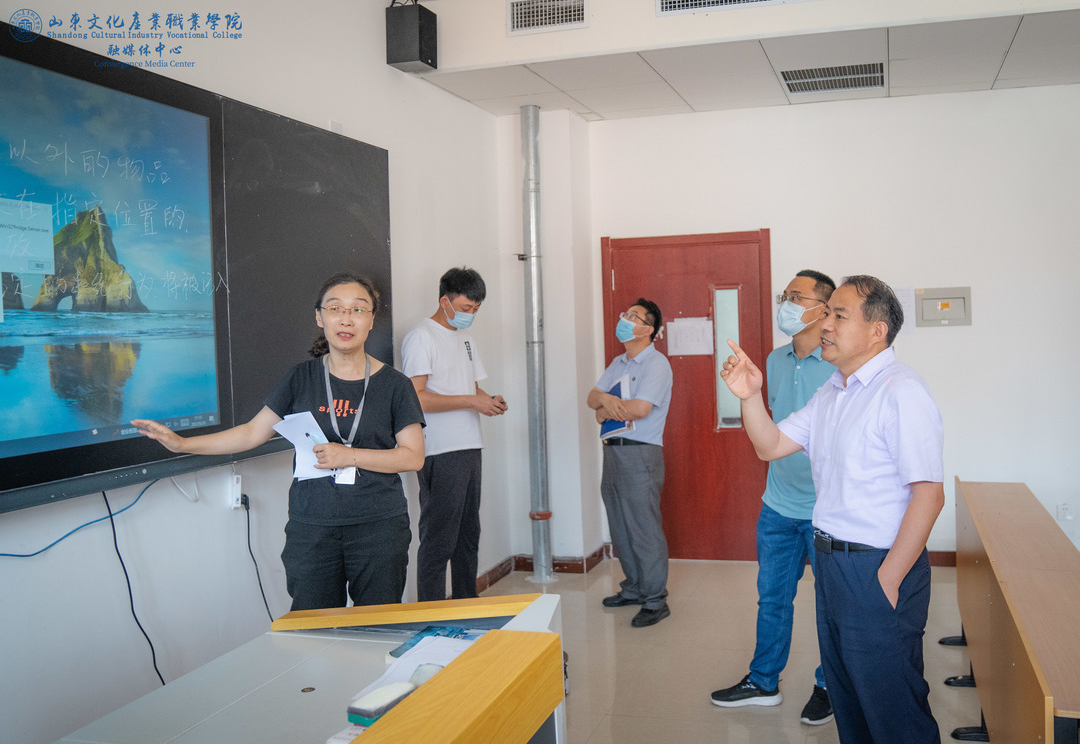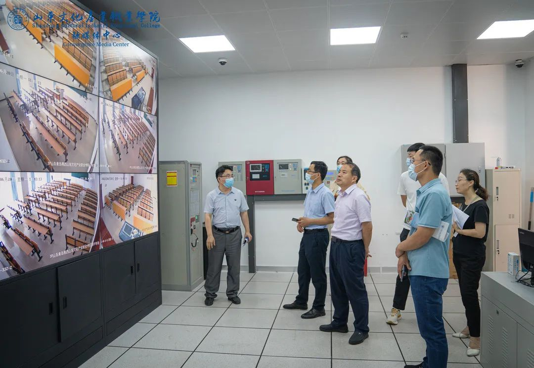 6月20日上午,青岛黄海学院副校长梁忠环携教学工作部、规划办公室、信息资源部、后勤保障部等相关职能处室负责人一行8人到访必威betway西汉姆,就标准化考场、智慧教室、教学信息化等建设情况进行调研考察。必威betway西汉姆校长杨民刚主持座谈会,副校长孙丽及相关处室负责人全程陪同。