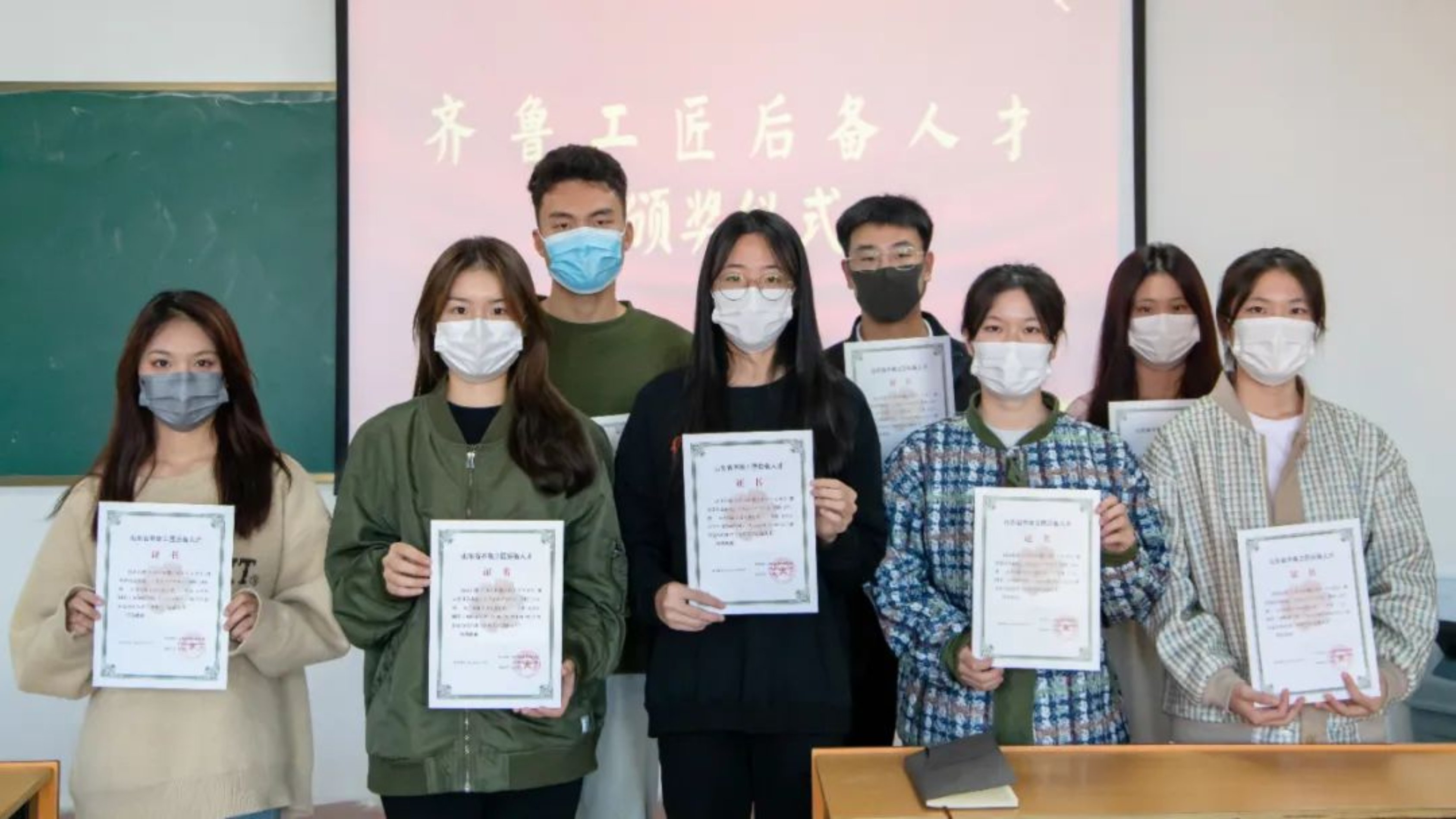 “齐鲁工匠后备人才”获奖学生与老师合照