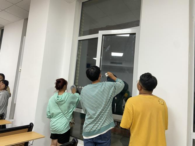 师生们分工合作,密切配合,对创新楼周围绿化带和教室卫生死角进行了彻底清理,教学各个教室的环境卫生得到改善,整个教学楼面貌焕然一新。