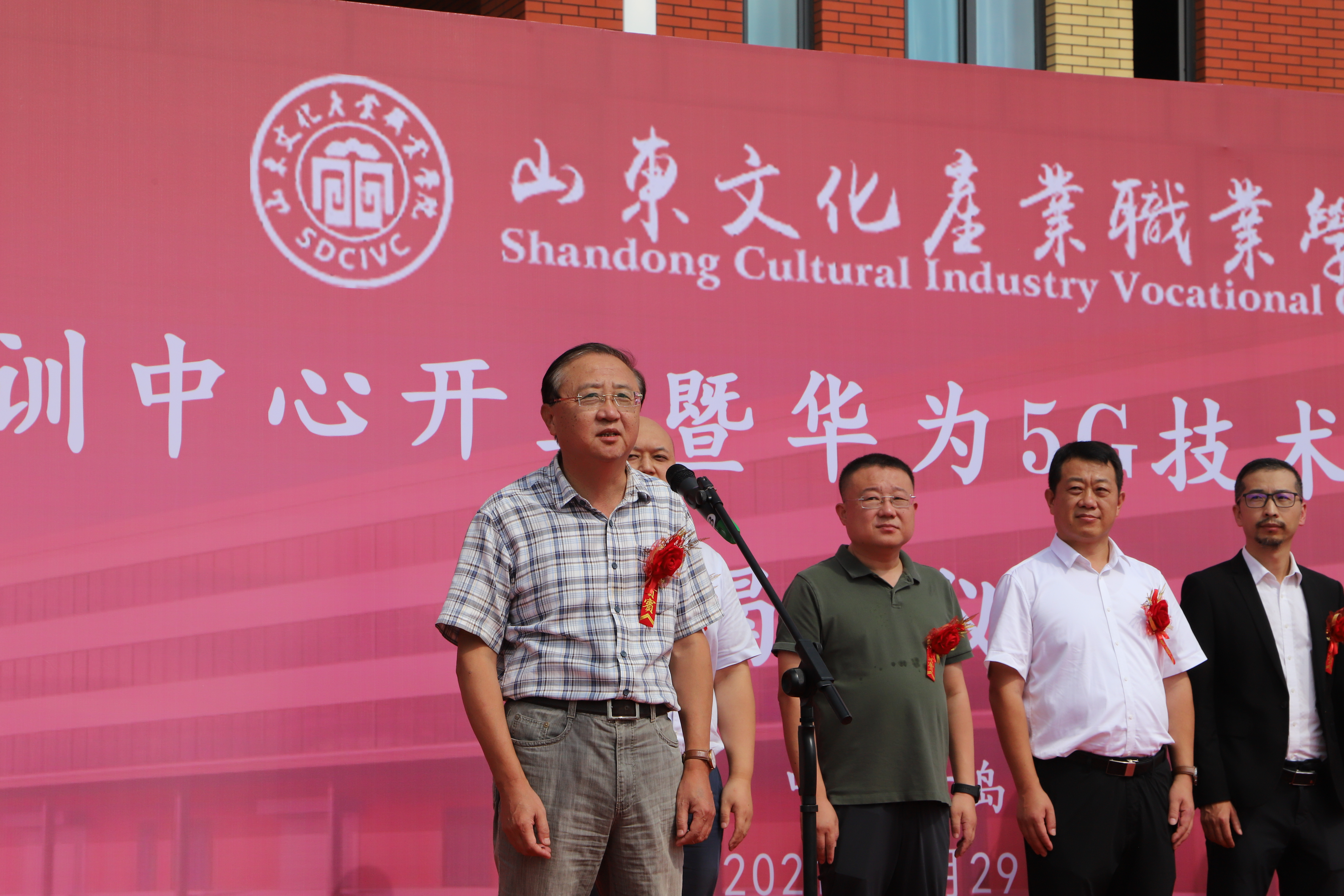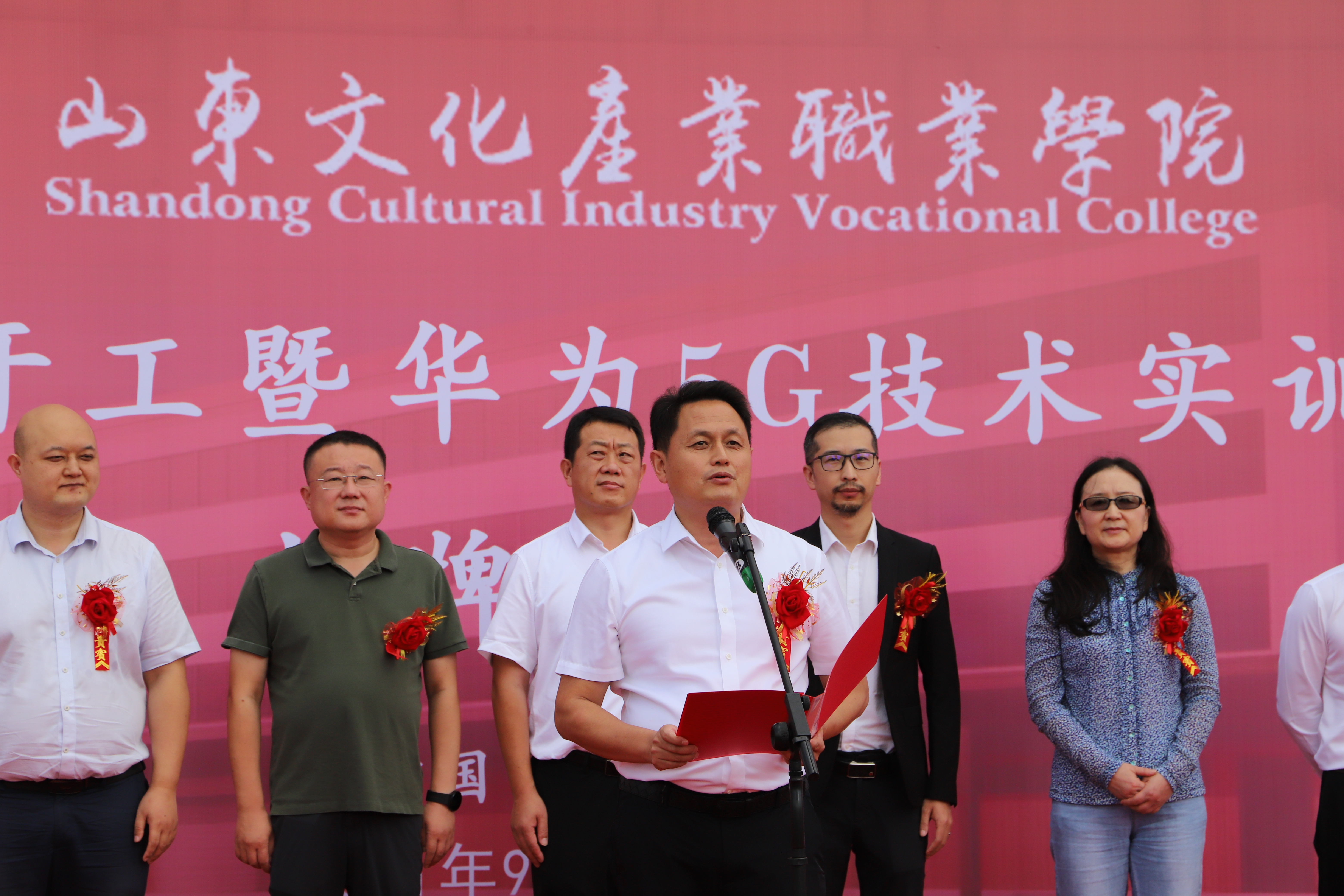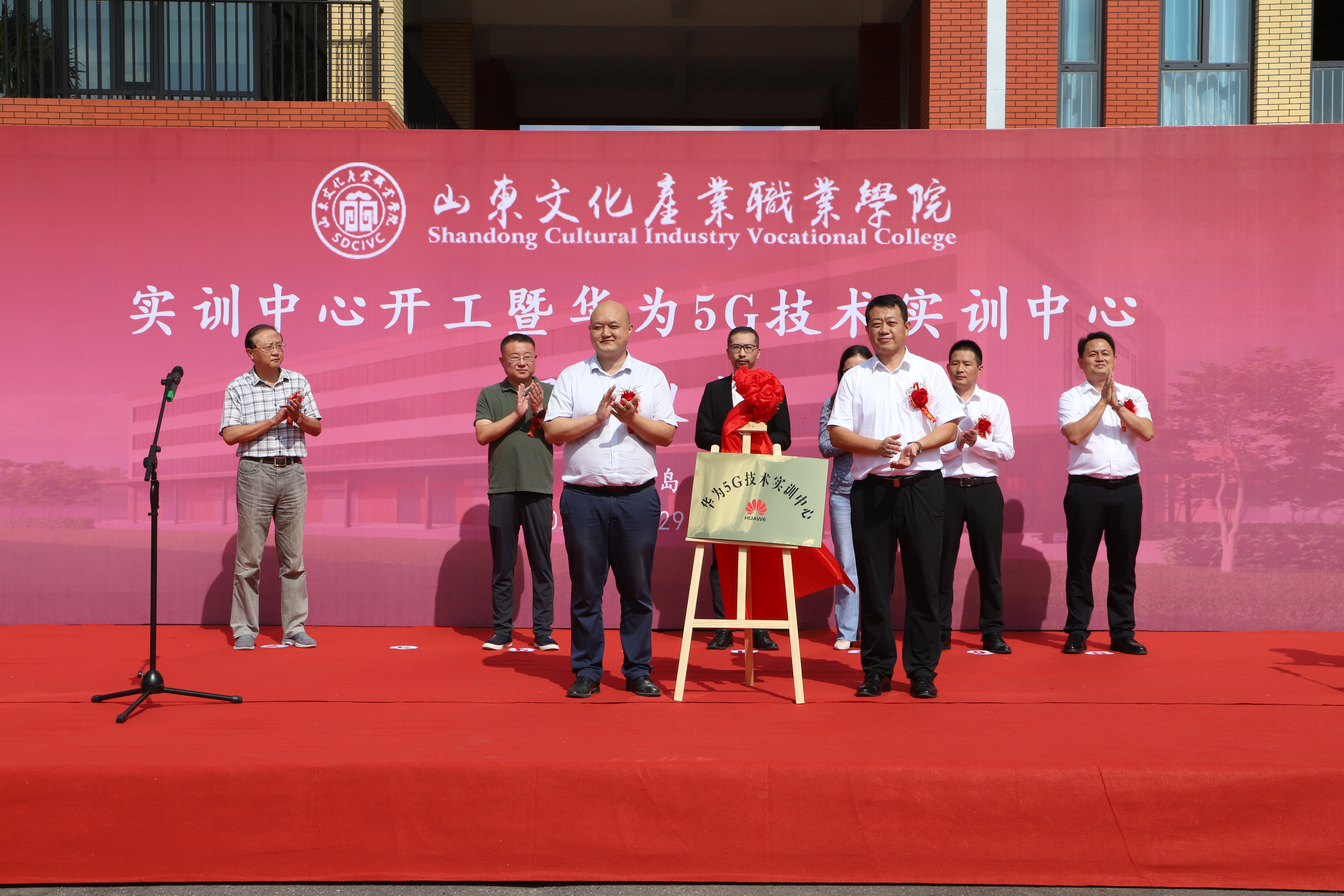 开工仪式现场,莱西市委常委、宣传部部长、教育工委书记纪玉水与华为技术服务有限公司5G技术实训中心主任雷春阳共同为必威betway西汉姆“华为5G技术实训中心”揭牌。