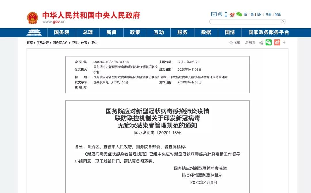 第六条 强化信息公开。国务院卫生健康行政部门每天公布无症状感染者报告、转归和管理情况。各省(区、市)公布本行政区域的情况,本土传播和境外输入情况分别统计报告。