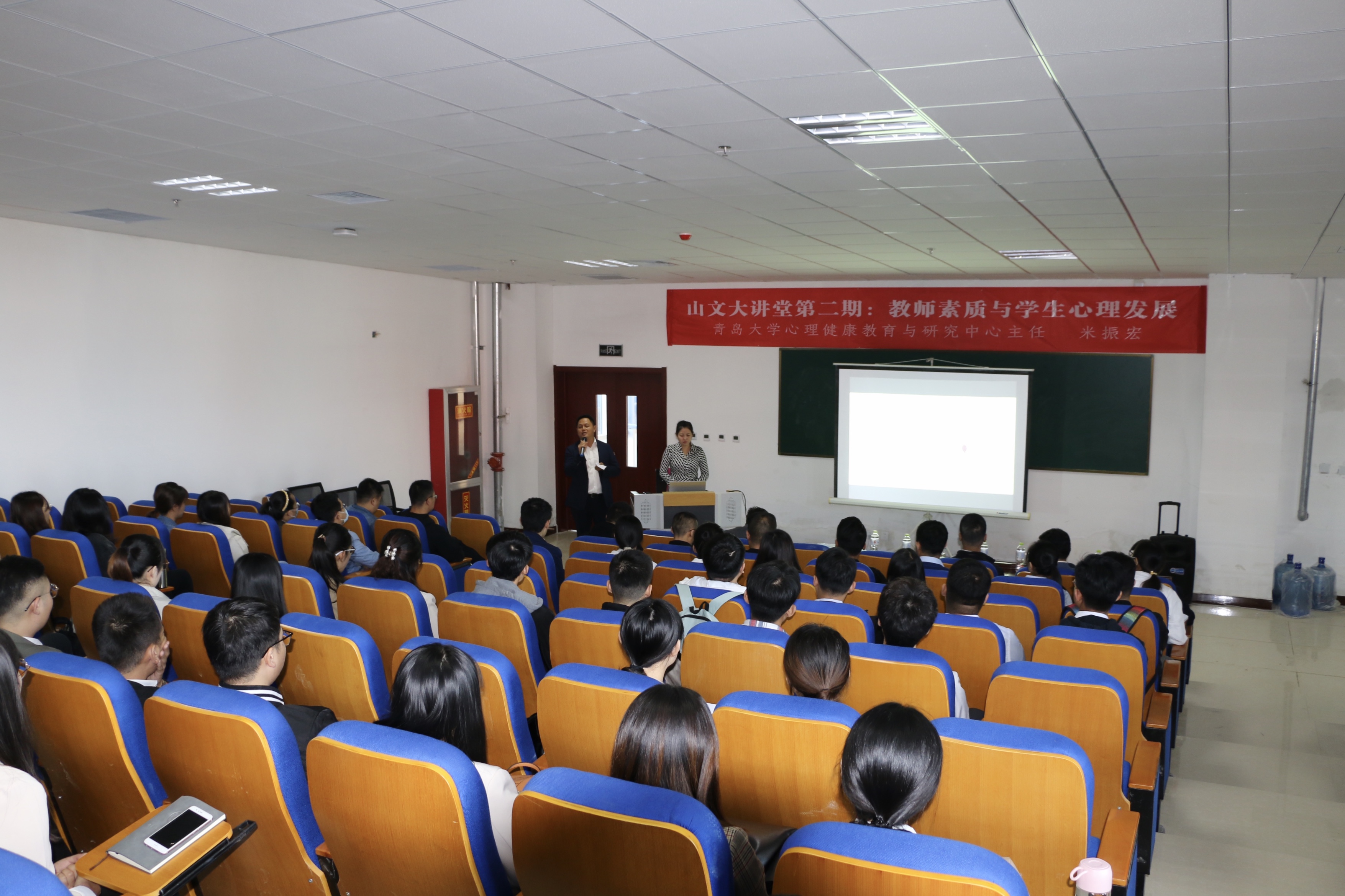 开学在即,为提升教师队伍心理健康教育工作水平,切实增强教师工作的针对性和实效性,10月8日,青岛大学心理健康教育与研究中心米振宏教授受邀来必威betway西汉姆开展“教师素质与学生心理发展”讲座,本次讲座也是“山文大讲堂”的第二期活动,学院领导李京平、冯潘宗、李和平、张永刚参加活动。