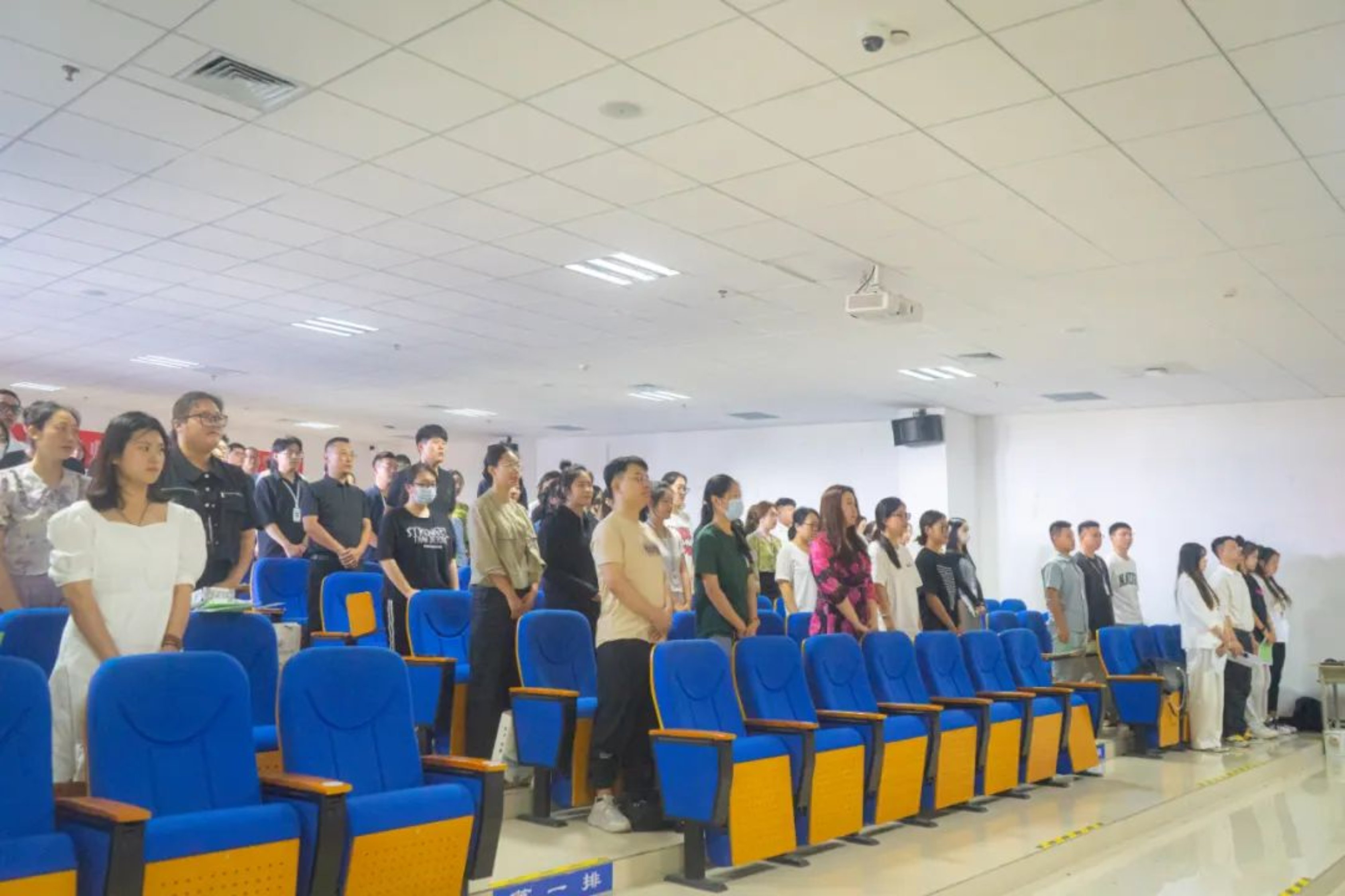 全体起立,奏唱国歌