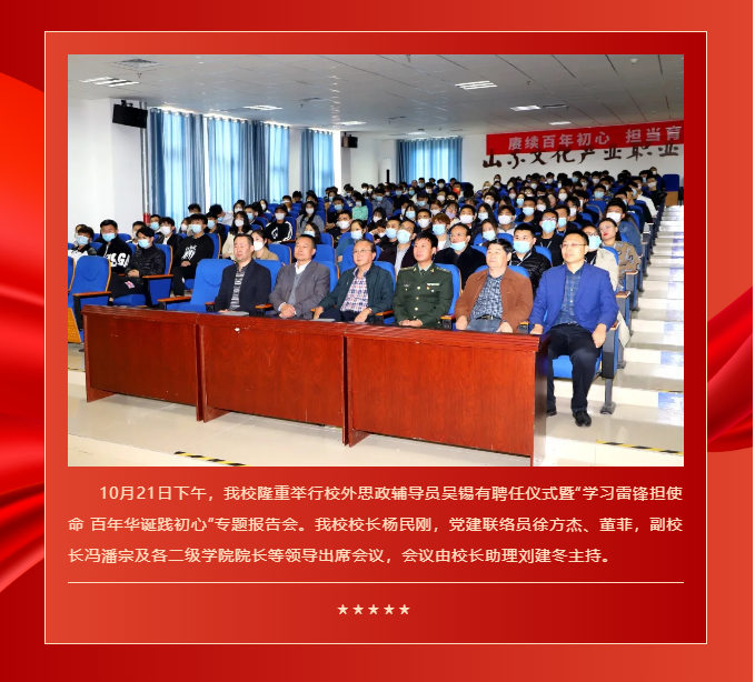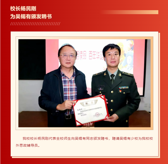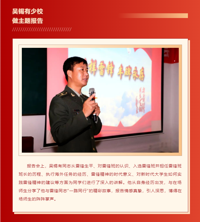 学习雷锋担使命 百年华诞践初心|雷锋班第二十二任班长吴锡有同志受聘成为必威betway西汉姆校外思政辅导员并做专题报告
