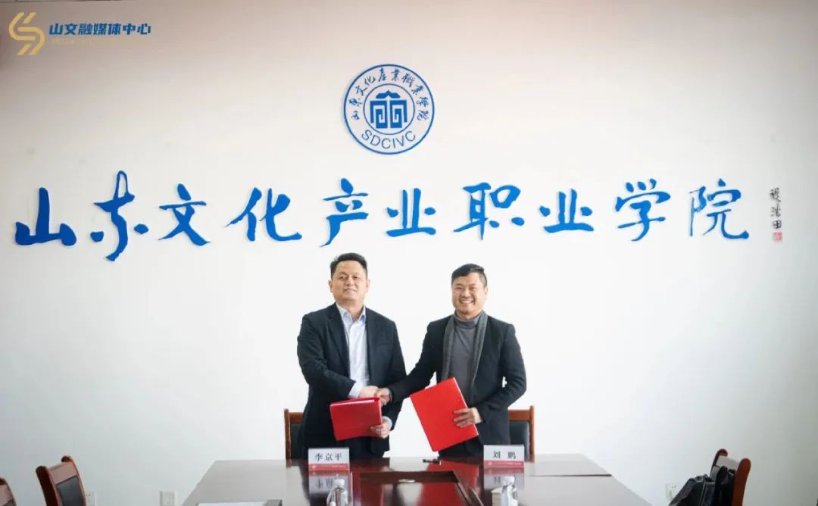 汇力同行,筑梦山文。双方在校企合作协议上达成共识,执行校李京平与青岛汇众鼎视文化科技有限公司总经理刘鹏代表双方共同签署战略合作协议。