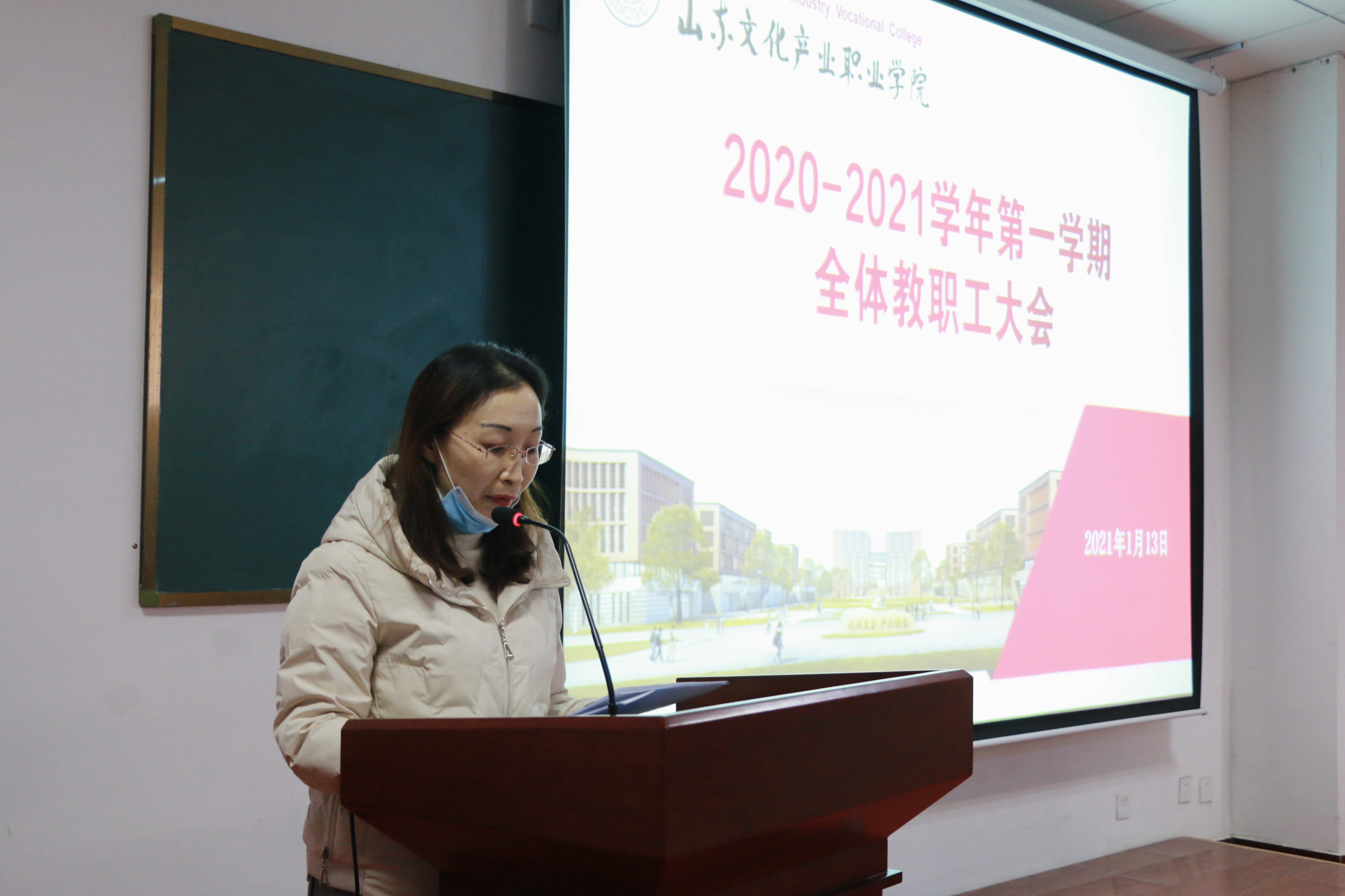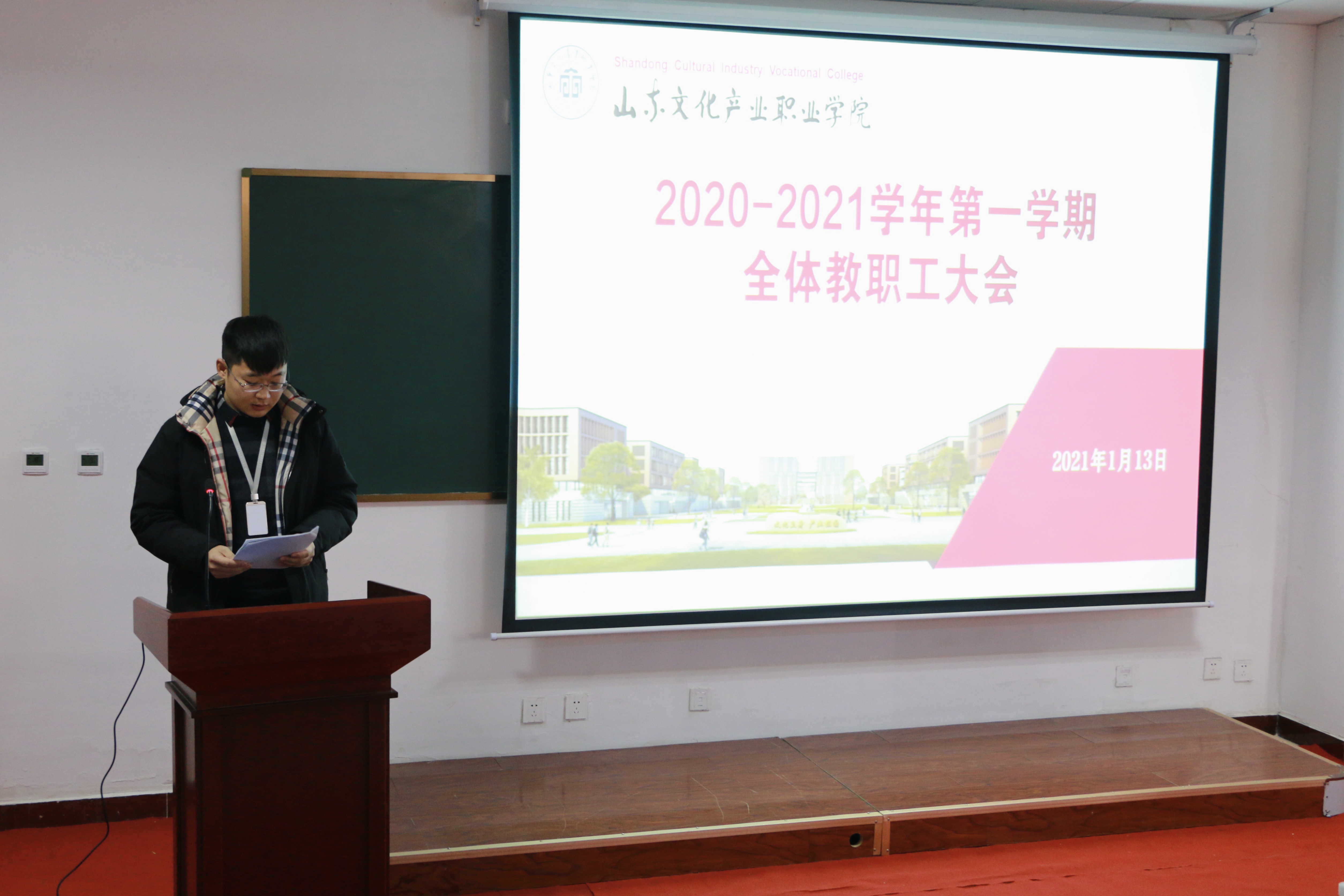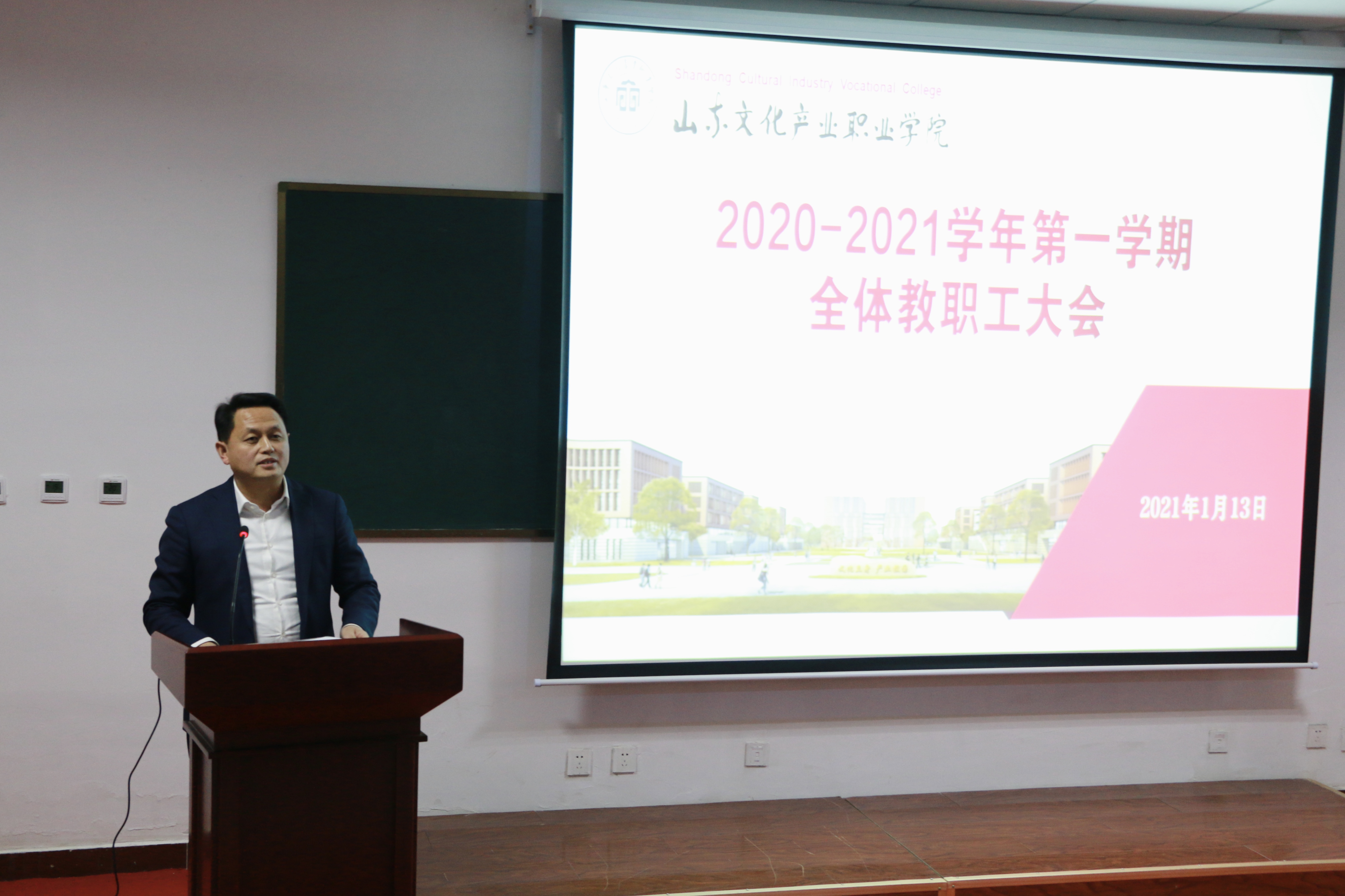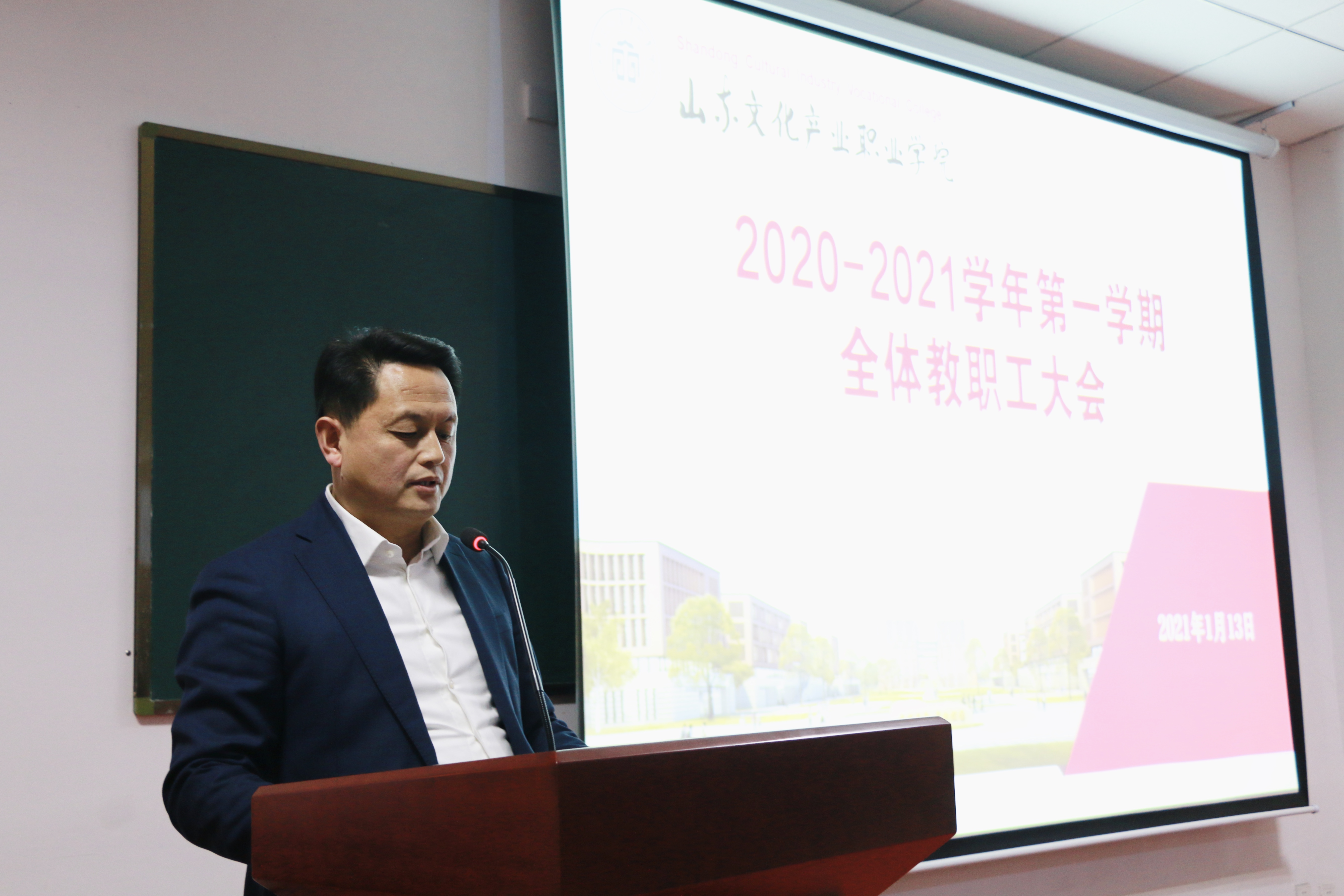 1月13日,必威betway西汉姆召开2020-2021学年第一学期全体教职工大会,执行校长李京平作2020年度工作报告。校领导班子成员、各二级学院院长、处室负责人、专任教师及行政后勤人员参加会议。会议由姜雪松副院长主持。