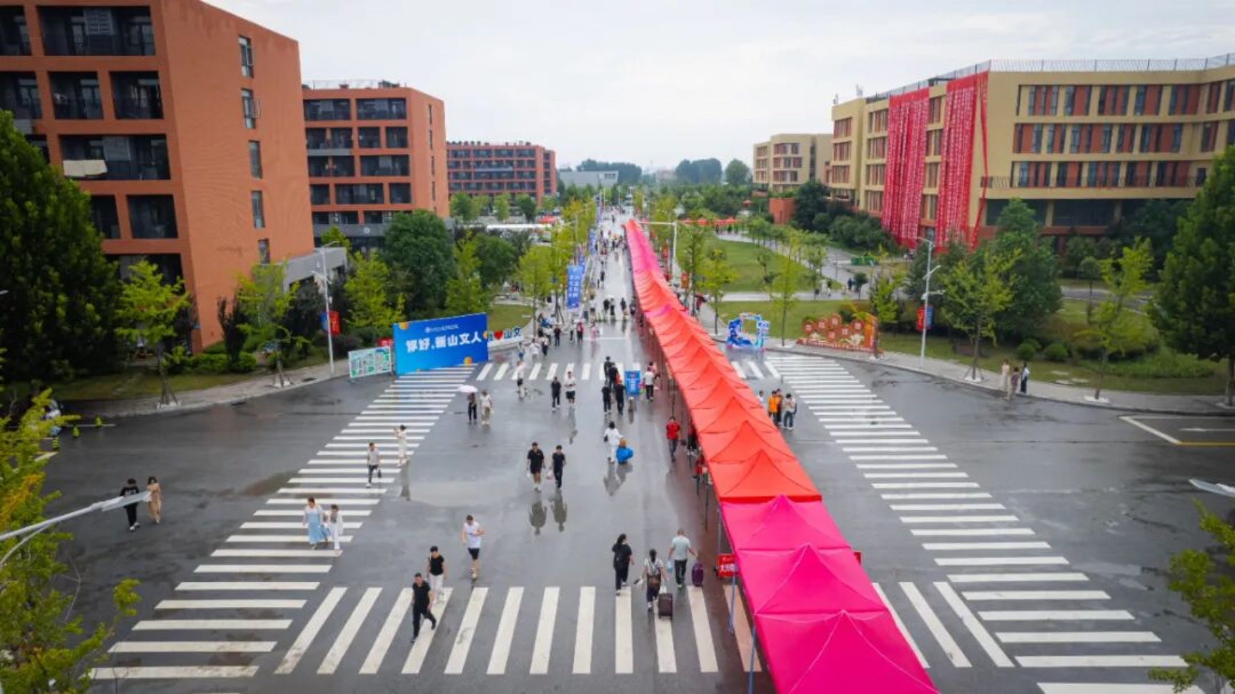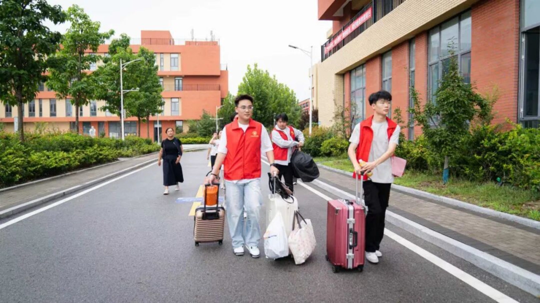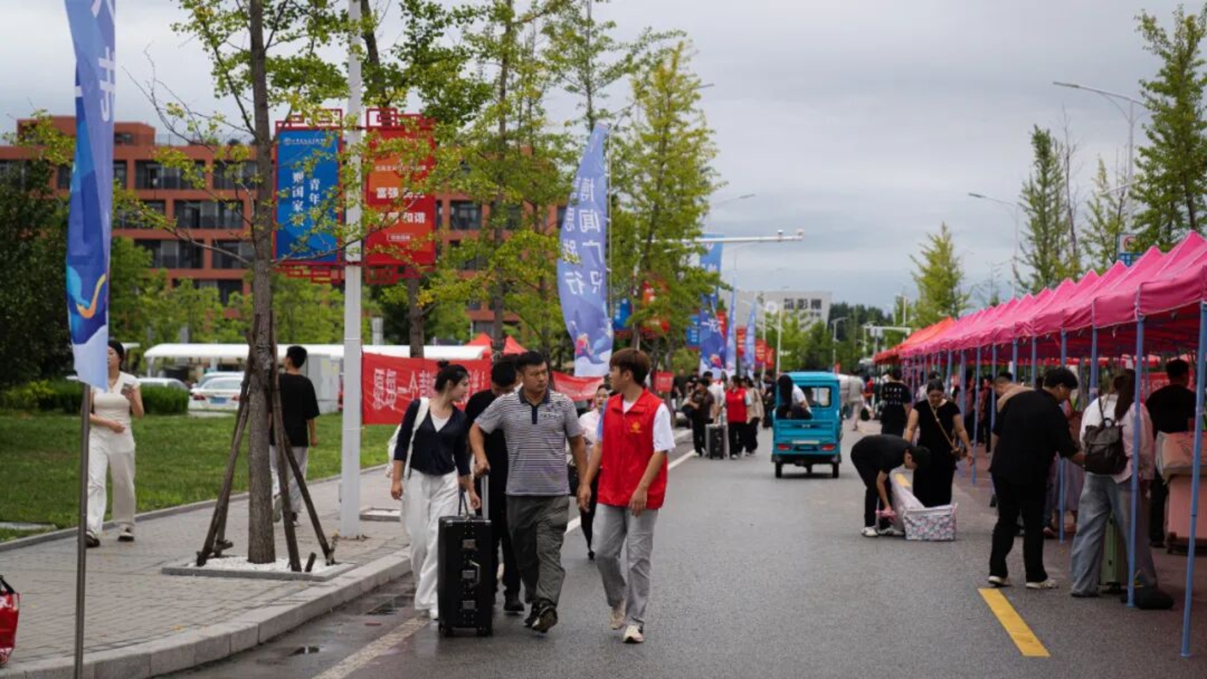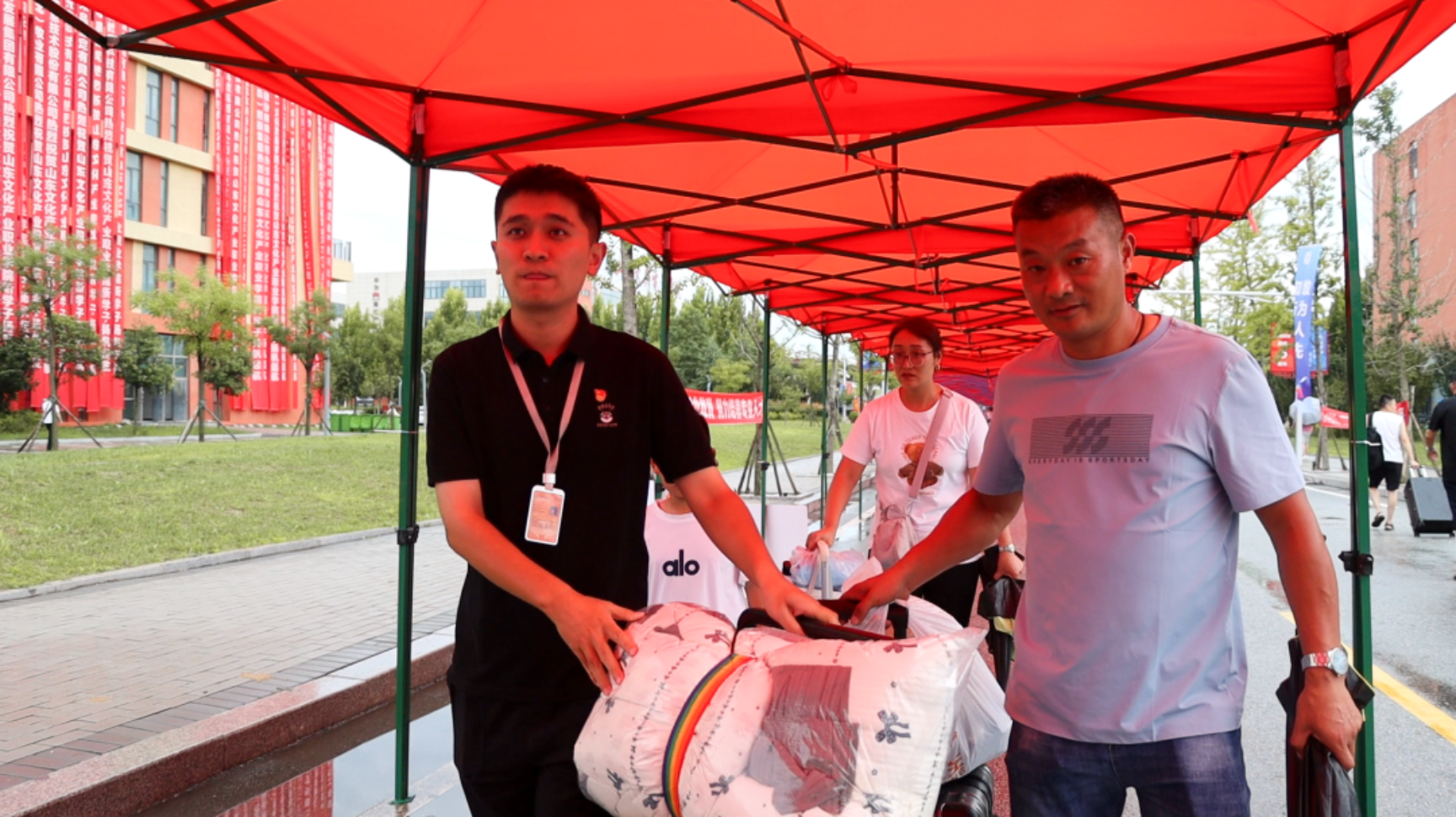 为了做好2025级报到工作,学校高度重视,提前谋划、周密部署,统筹协调各部门优化服务流程,从报到地点设置、报到流程简化,到接站车辆、引导团队、行李搬运服务,再到公寓物品领用、餐饮提供等等,全方位为新生及家长提供便捷、暖心的服务,确保迎新工作高效有序推进。学校还提前拍摄制作了新生报到攻略,方便学生和家长轻松入校!根据天气预报,得知新生报到这两天会有降雨。为避免学生和家长们淋雨,学校将从校门口至报到处,全程搭建了百米遮雨帐篷,搭起一条风雨无阻的通道,一份暖暖的开学礼~~
