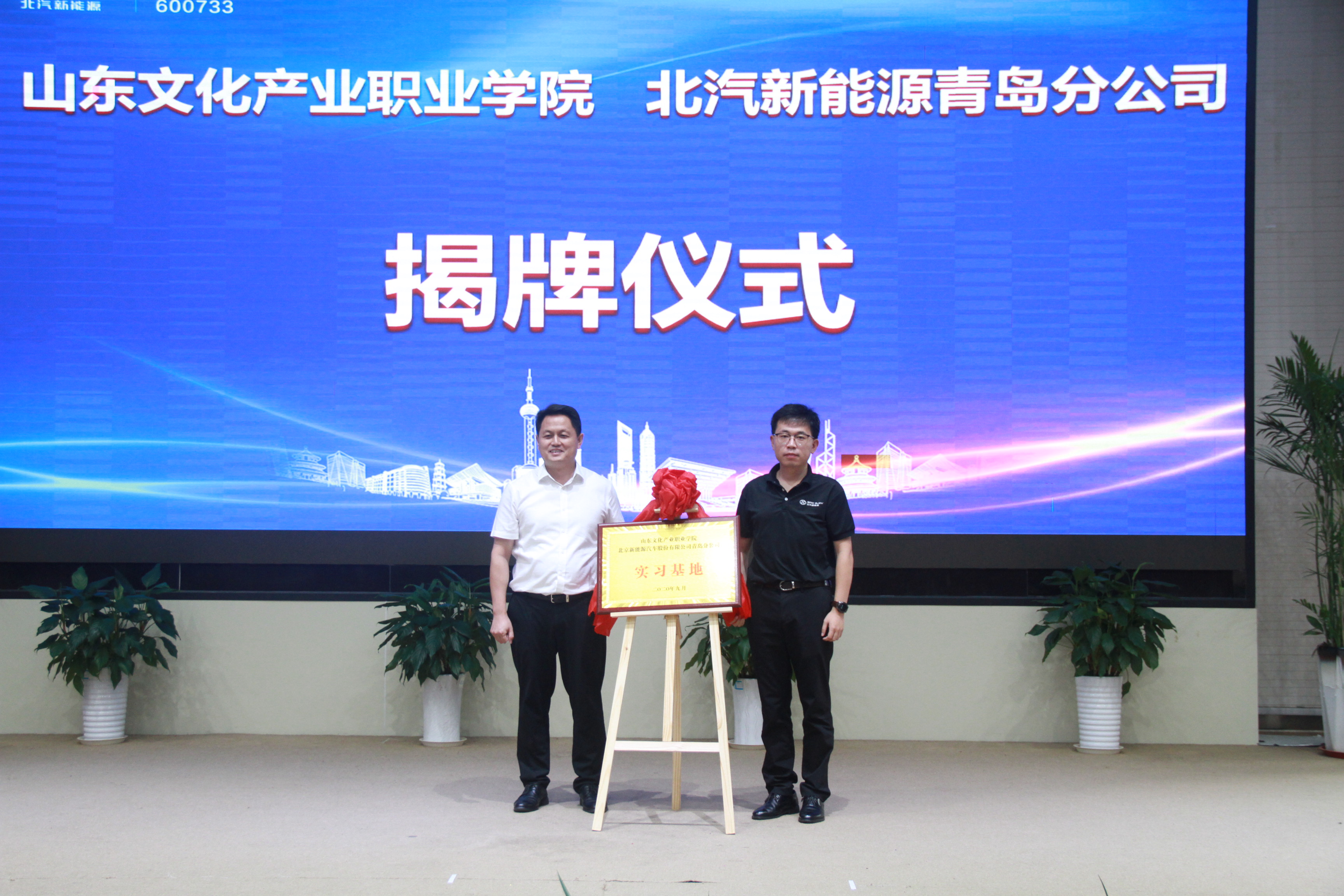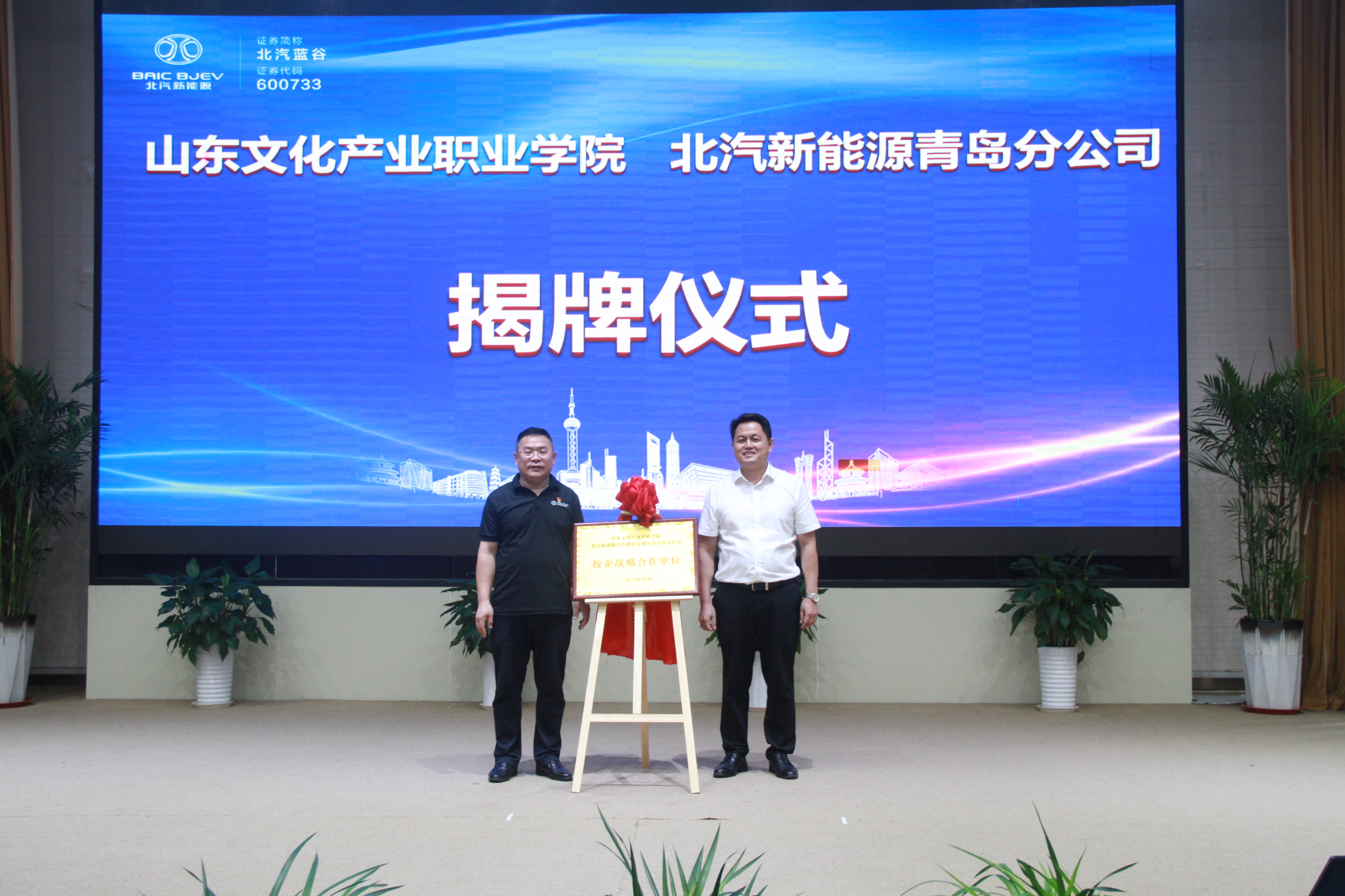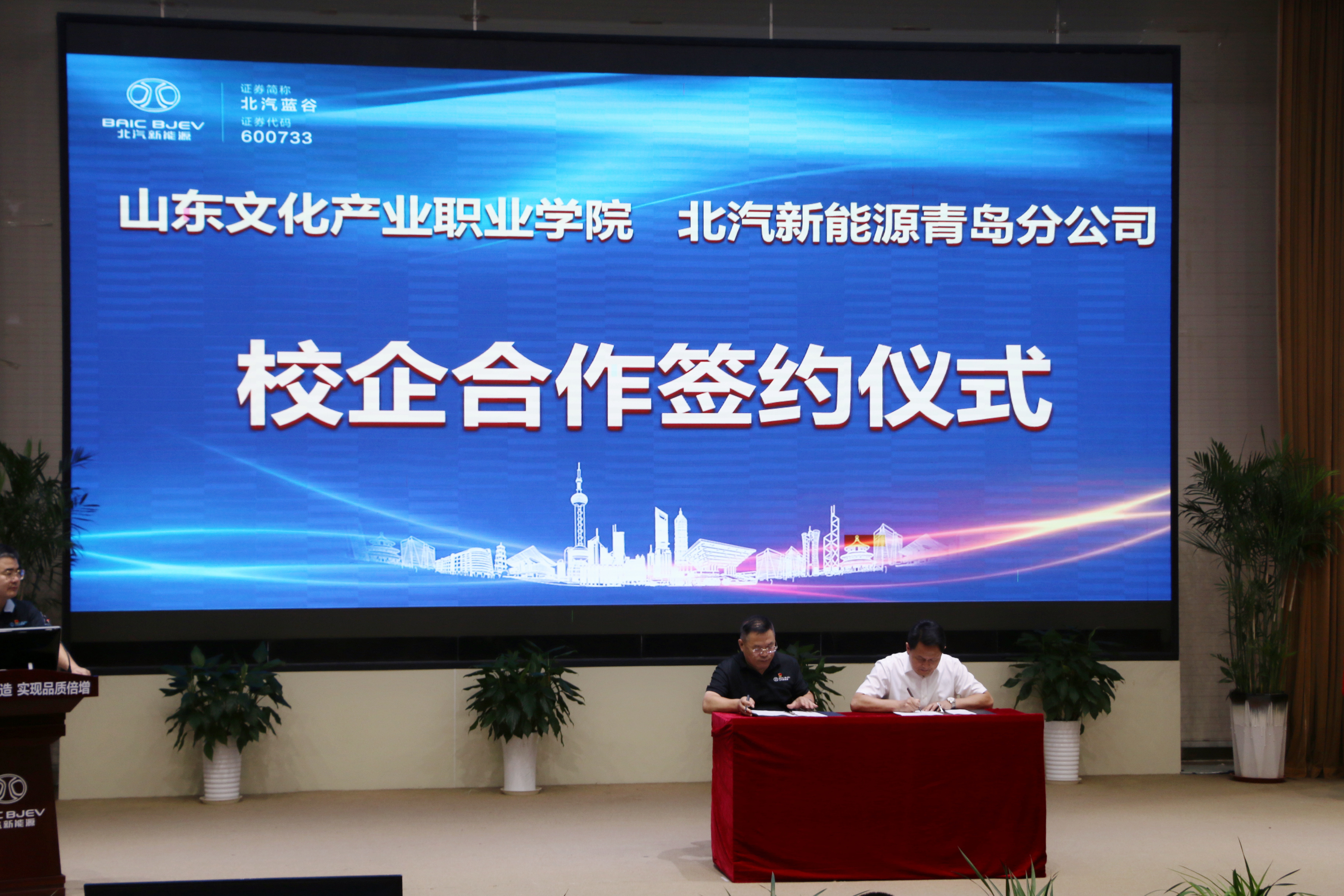 北汽新能源青岛分公司党委副书记、总经理王庆洲,党委副书记、纪委书记、工会主席李晓强,党委委员、副总经理刘磊,学院执行院长李京平,副院长李和平、张永刚等出席签约仪式。
