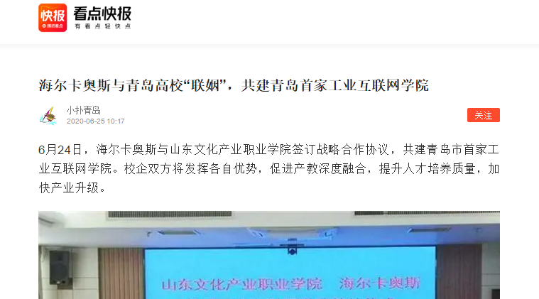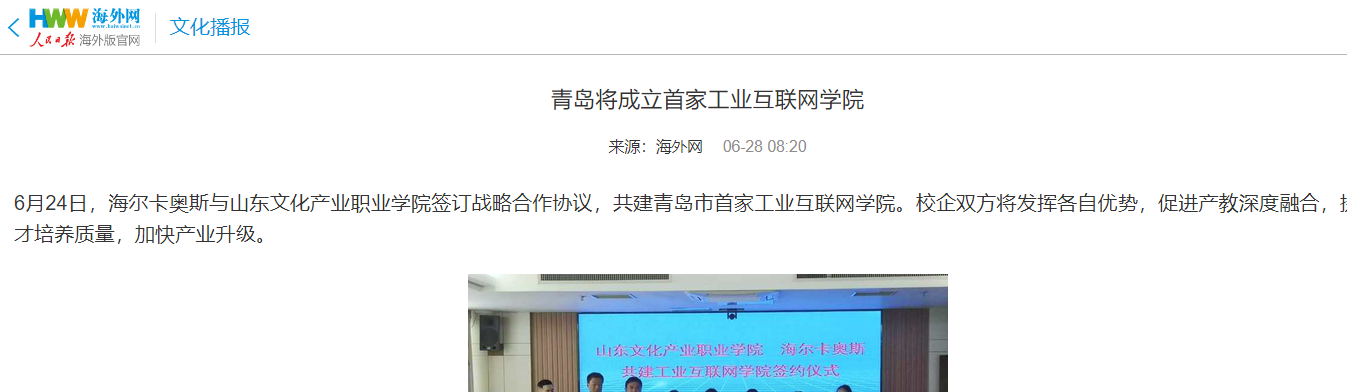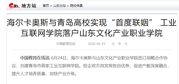 工业互联网巨头牵手本土高校,共同推进产业人才链建设,这样的跨界合作在省内尚属首次。签约成功的消息发布后,近200多家国内媒体争相报道此事,对工业互联网“ 产教融合”模式给予高度评价。