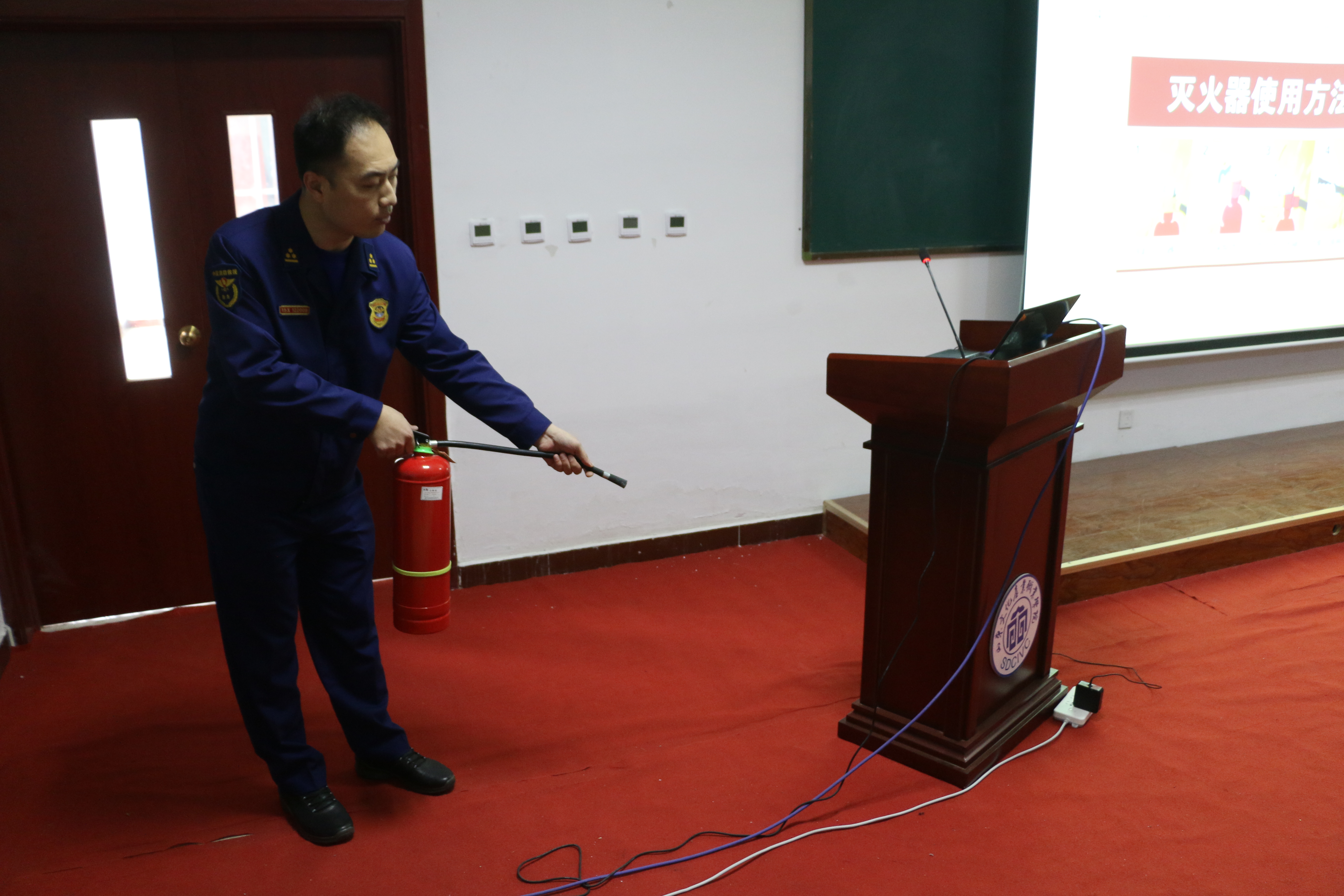 邓科长通过一个个真实的案例,结合图片和视频资料,深入浅出地讲解了消防安全的重要性,全面介绍了在日常的学习生活中应注意的消防安全细节、如何扑救初期火灾以及火灾中如何自救、逃生等知识,并对消防器材的正确使用做了细致的讲解和演示。