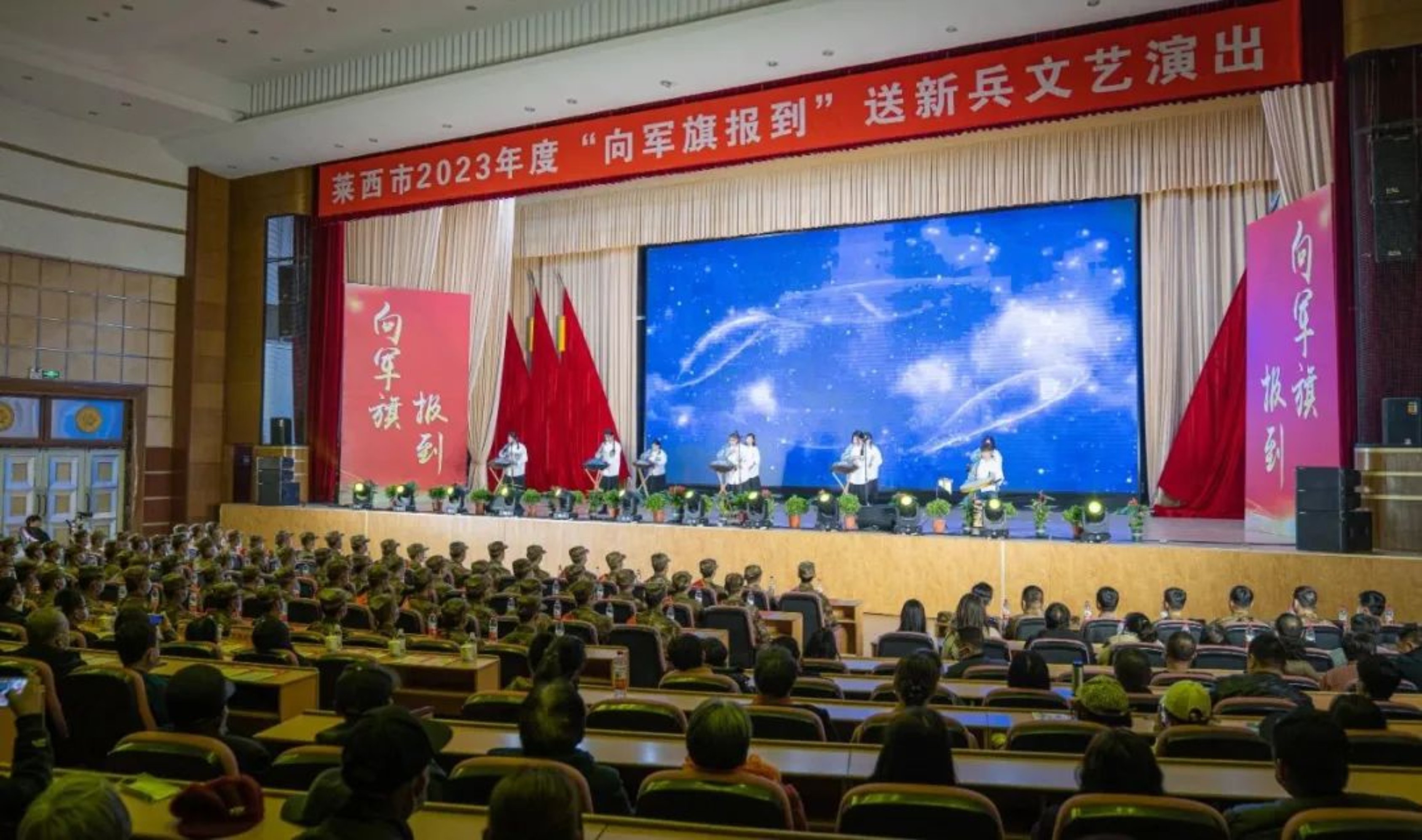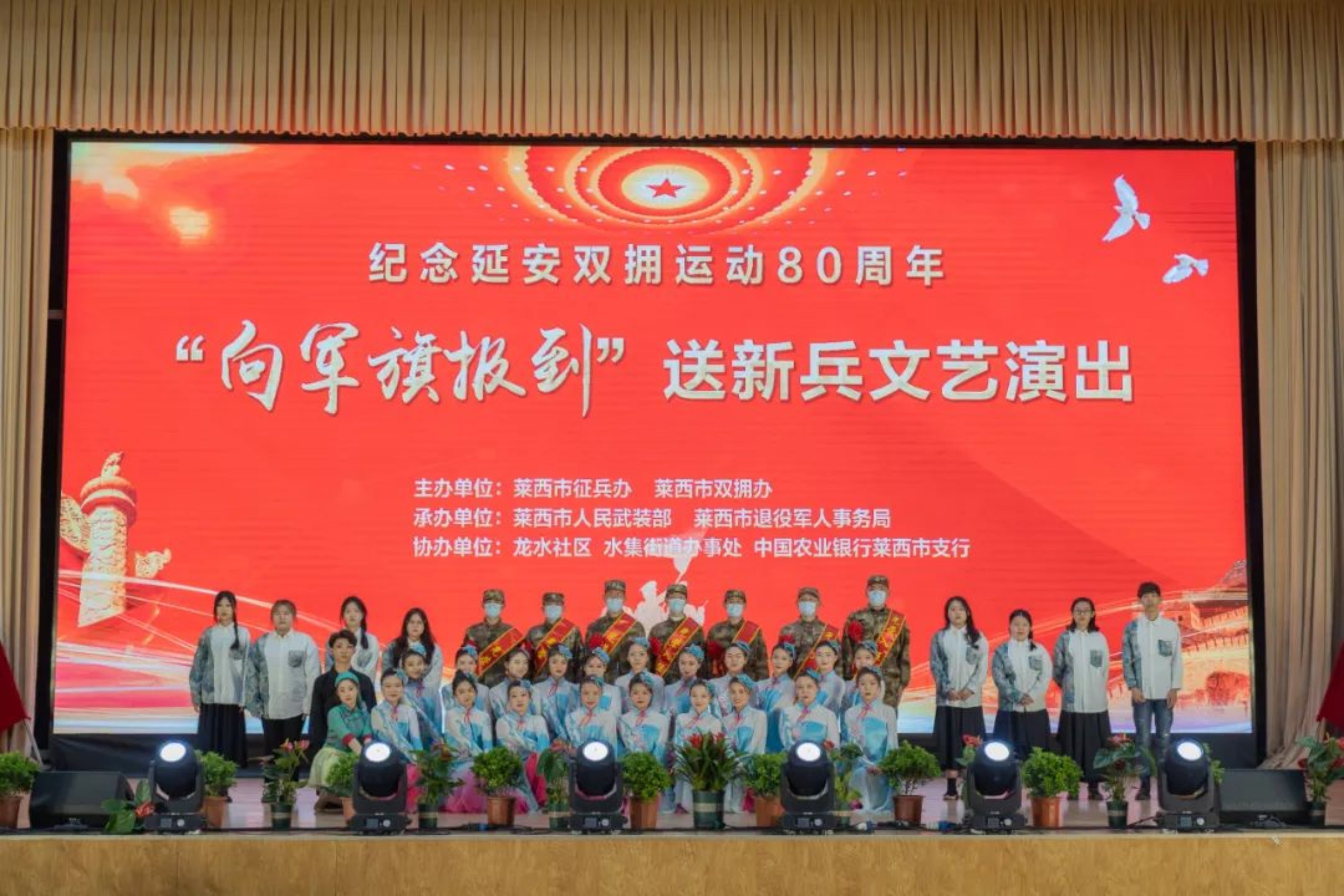 爱国奉献,参军光荣。3月12日下午,莱西市征兵办与双拥办联合举办纪念延安双拥运动80周年“向军旗报到”送新兵文艺演出,祝贺80名新兵即将奔赴军营开启崭新人生。应莱西市双拥工作领导小组办公室的盛情邀请,必威betway西汉姆舞蹈学院及打击乐学院师生一行42人参加文艺演出,为人民卫士献舞技、展才艺、送祝福。职