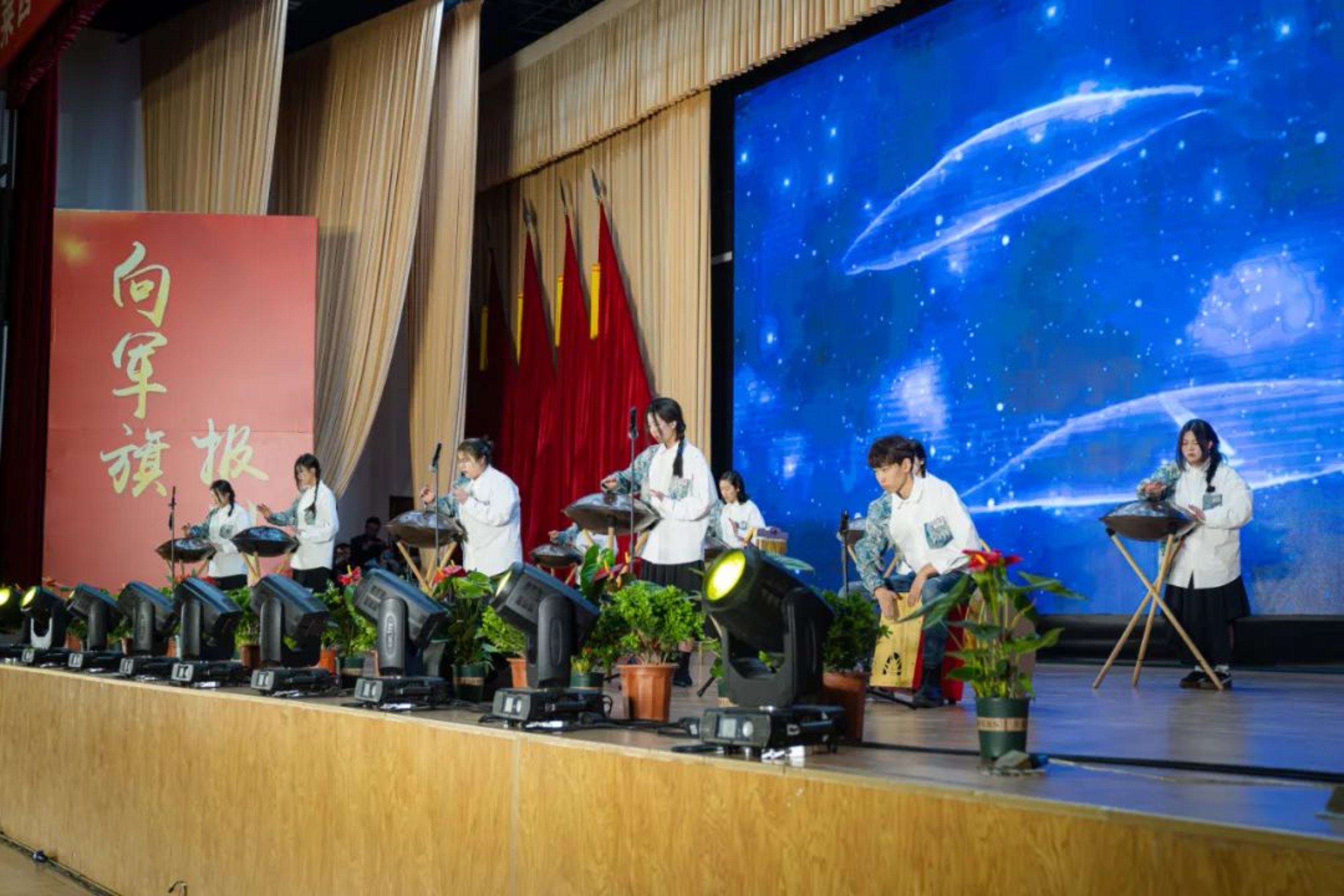 合奏作品《随想》将手碟与各种打击乐器结合,使大家徜徉在乐由心生,音随碟舞的意境中,传递着爱国拥军正能量,向我们伟大的党献上山文儿女诚挚的祝福,展现了广大山文学子们坚定的信仰、青春的力量以及新时代青年一代的精神风貌!