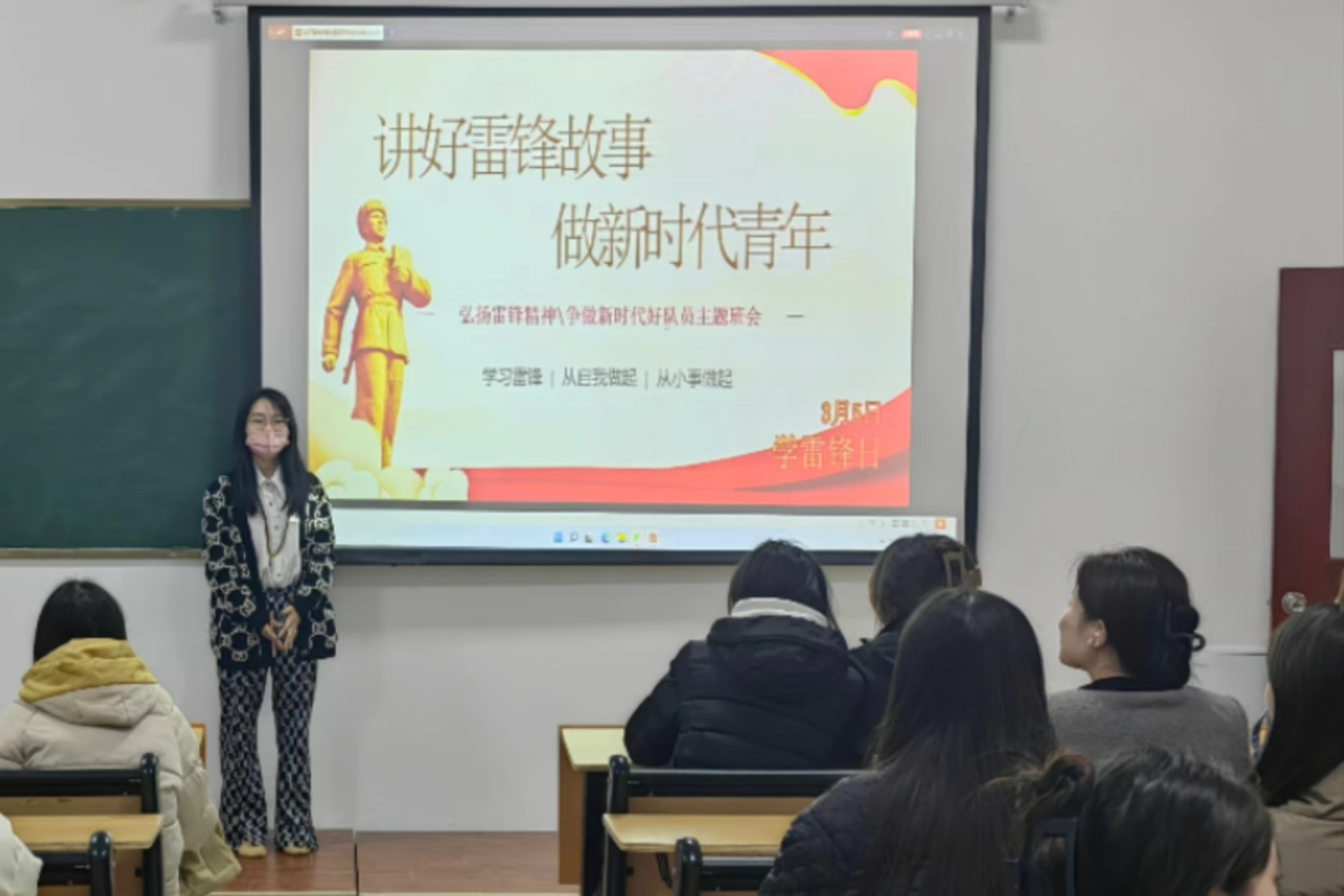 通过主题团会的开展,学生聚集在一起,听雷锋故事,感受雷锋帮助他人的那种无私奉献精神,激起学生学雷锋的激情,更好地传承了雷锋精神。站在实现两个一百年奋斗目标的历史起点上,作为青年一代的我们更要在行动中践行雷锋精神,为实现中华民族伟大复兴不懈奋斗!