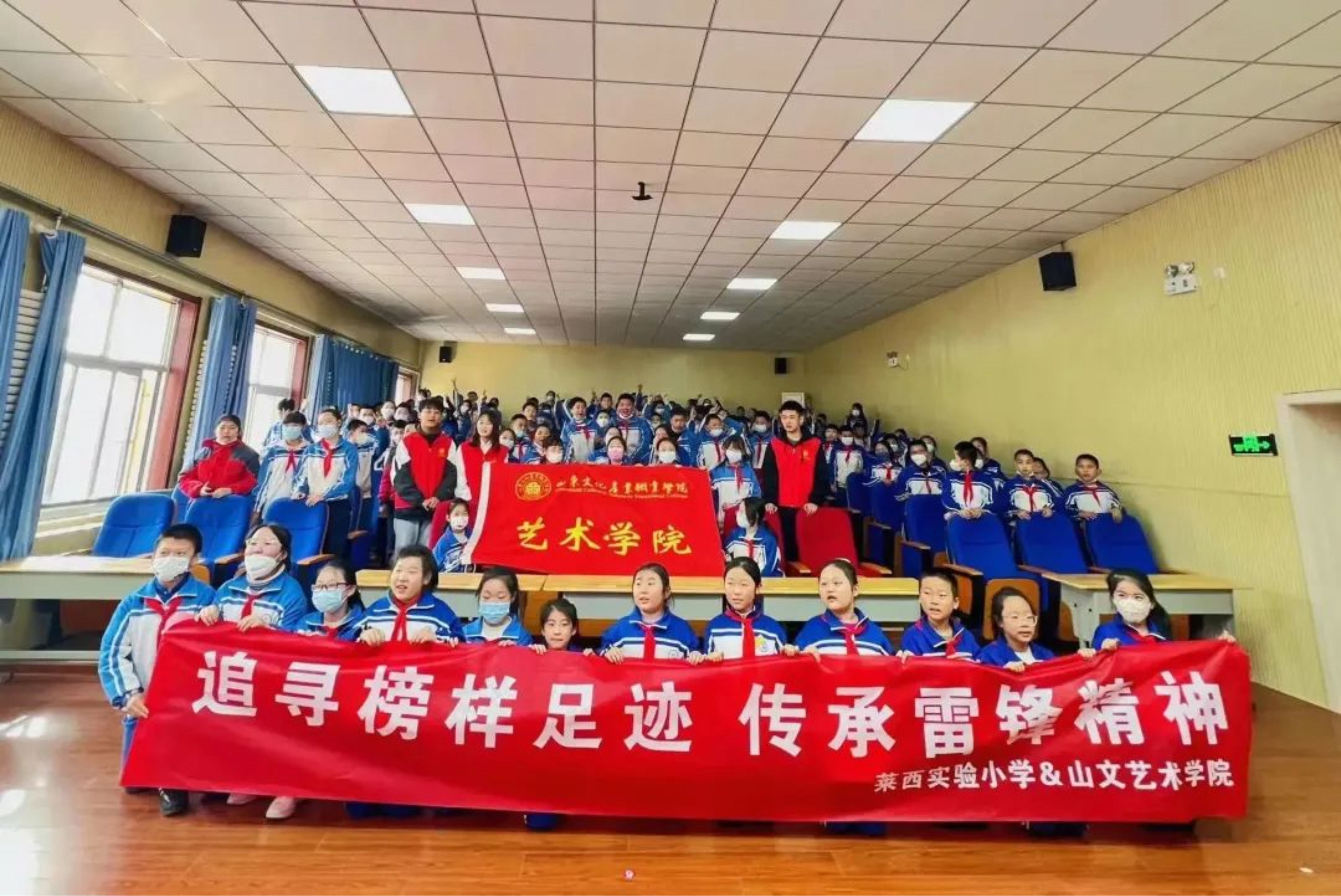 3月3日,艺术学院的团委老师带领志愿者同学们走进莱西实验小学,给他们讲雷锋故事、系红领巾、教他们唱歌。唱着《学习雷锋好榜样》的歌曲,让大家追寻雷锋的足迹,感悟雷锋的品行、体验雷锋的心灵,从小事做起,从现在做起,让雷锋精神继续在校园发扬光大,薪火相传!