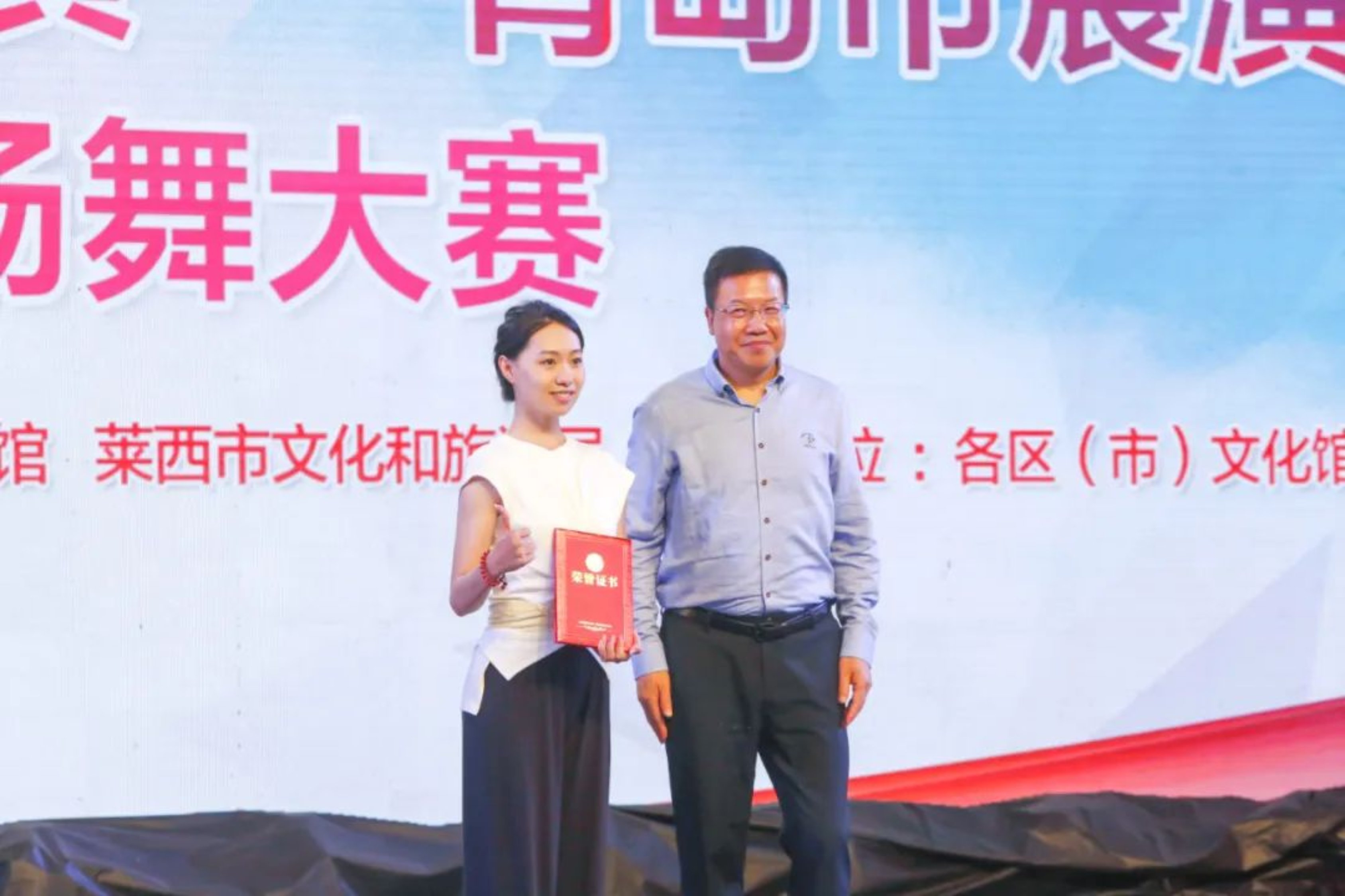 指导老师吴雪扬上台领奖来自青岛各区市的19支乡村广场舞队500余人参加比赛,经过激烈的角逐,必威betway西汉姆舞蹈学院青年舞团带来的《一条大河》脱颖而出,荣获“最佳风采奖”。