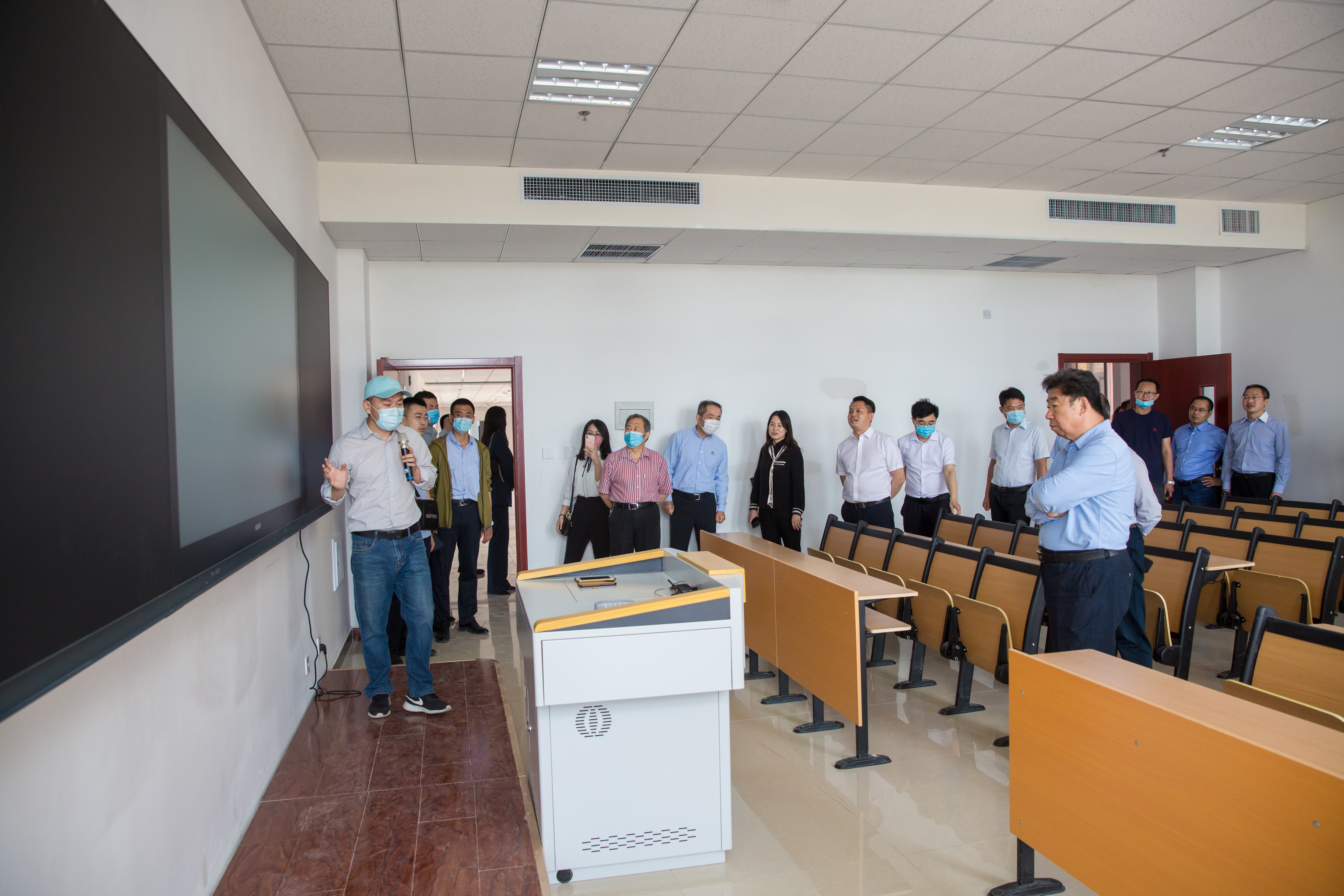 专家组由山东省高等教育学会会长、青岛大学原党委书记范跃进教授带队,其他四位专家分别为:泰山学院原党委书记田德全教授、山东管理学院原党委书记冯晋祥教授、青岛职业技术学院院长覃川教授、青岛黄海学院董事长刘常青教授。省教育厅发展规划处处长赵凤文、副处长梁立波,青岛市教育局总督学李岷、莱西市副市长丁朝霞等领导参加验收活动。