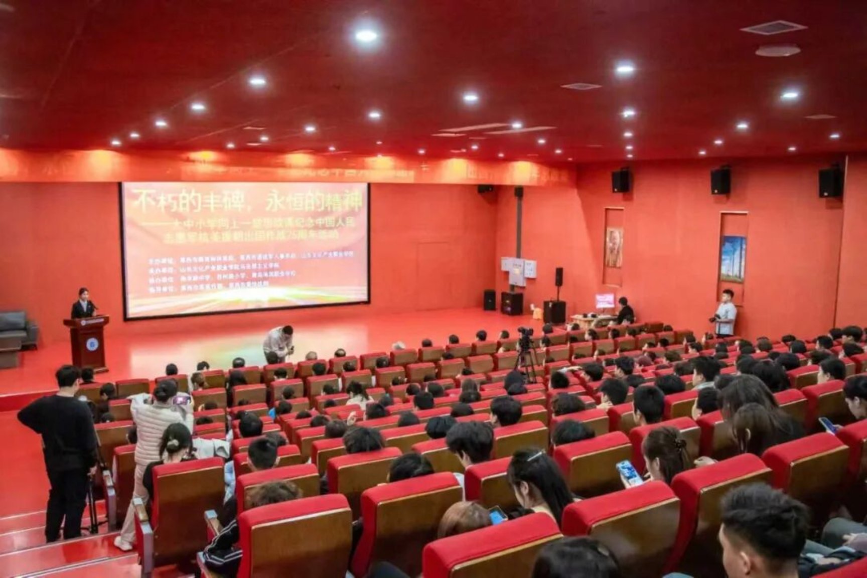 活动最后,全体学生起立,庄严宣誓:弘扬伟大抗美援朝精神,不畏艰难,砥砺前行;把爱国情、强国志、报国行融入日常的学习与生活;青春向党,时代有我,复兴伟业,必定功成!铮铮誓言响彻现场,成为青春担当的铿锵承诺。
