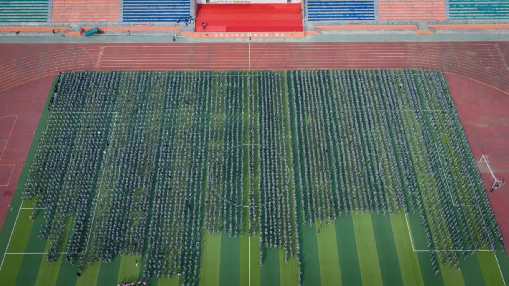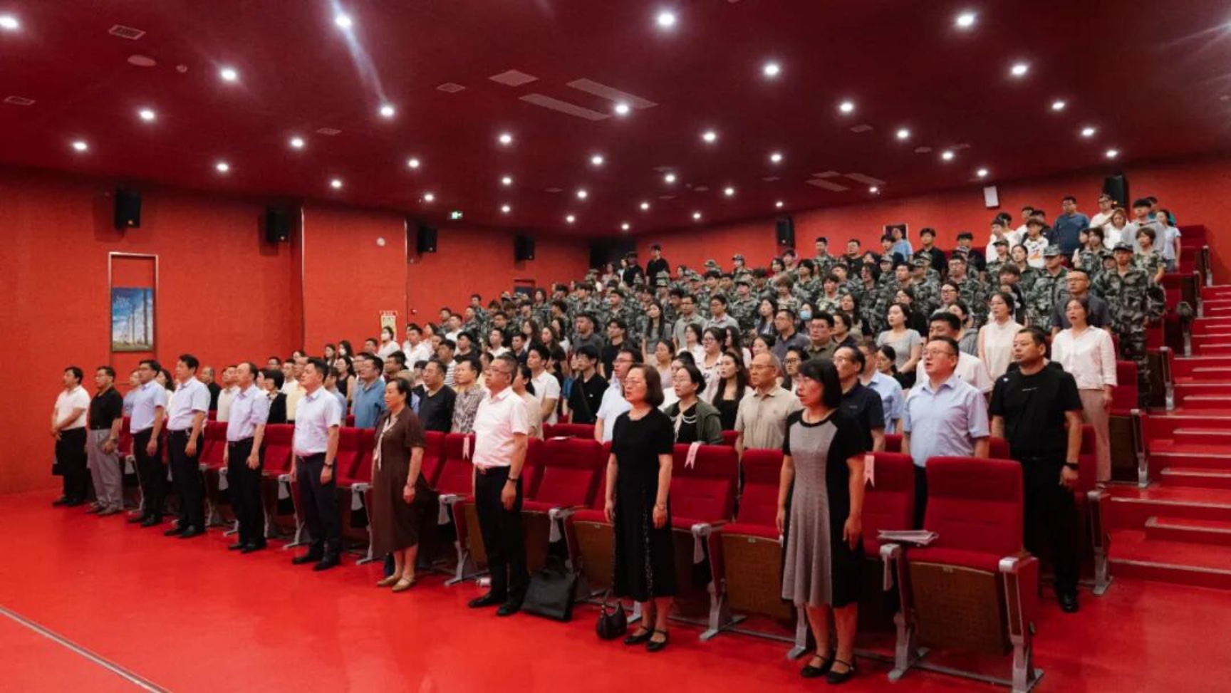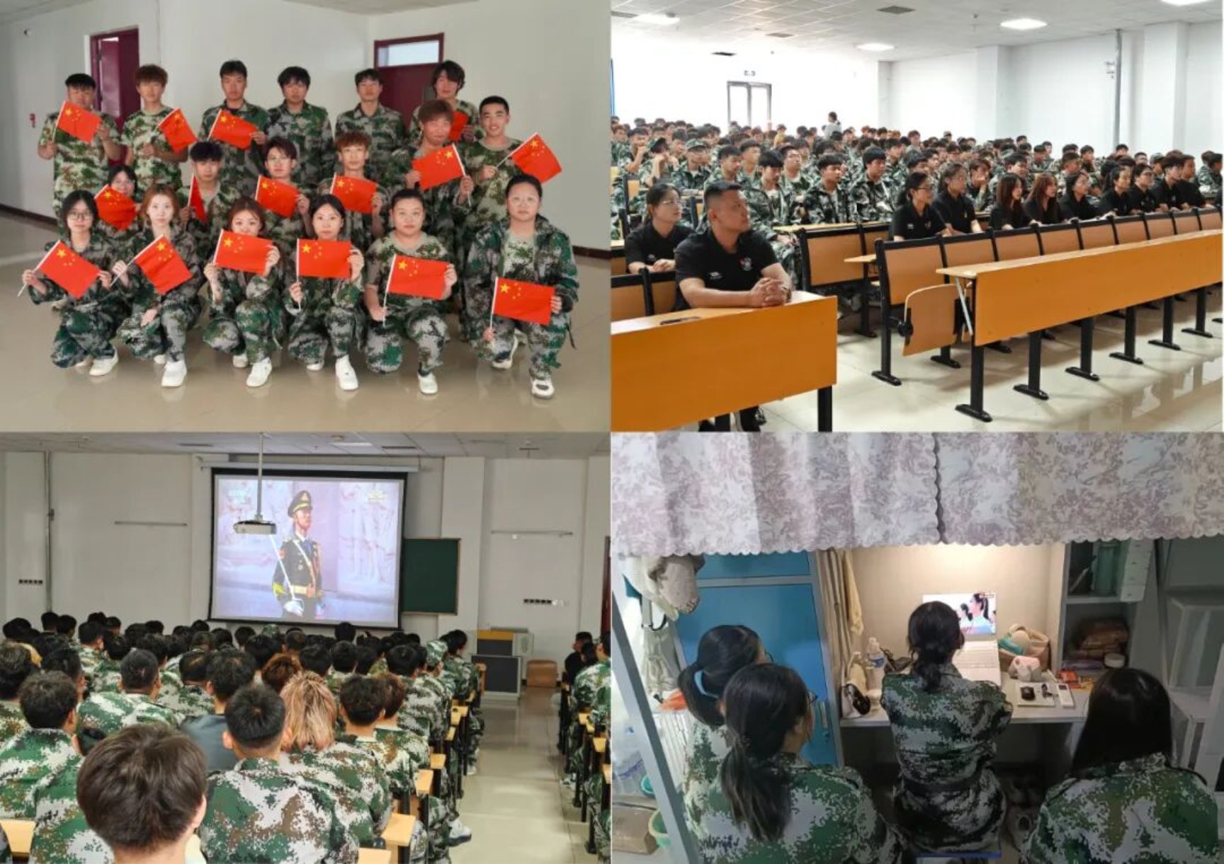 在当日清晨阅兵盛典开始前,2025级全体新生还齐聚运动场,参加了学校组织的隆重升国旗仪式,在庄严的国歌与飘扬的国旗中,提前感受爱国氛围,为后续观看阅兵盛典筑牢思想根基。