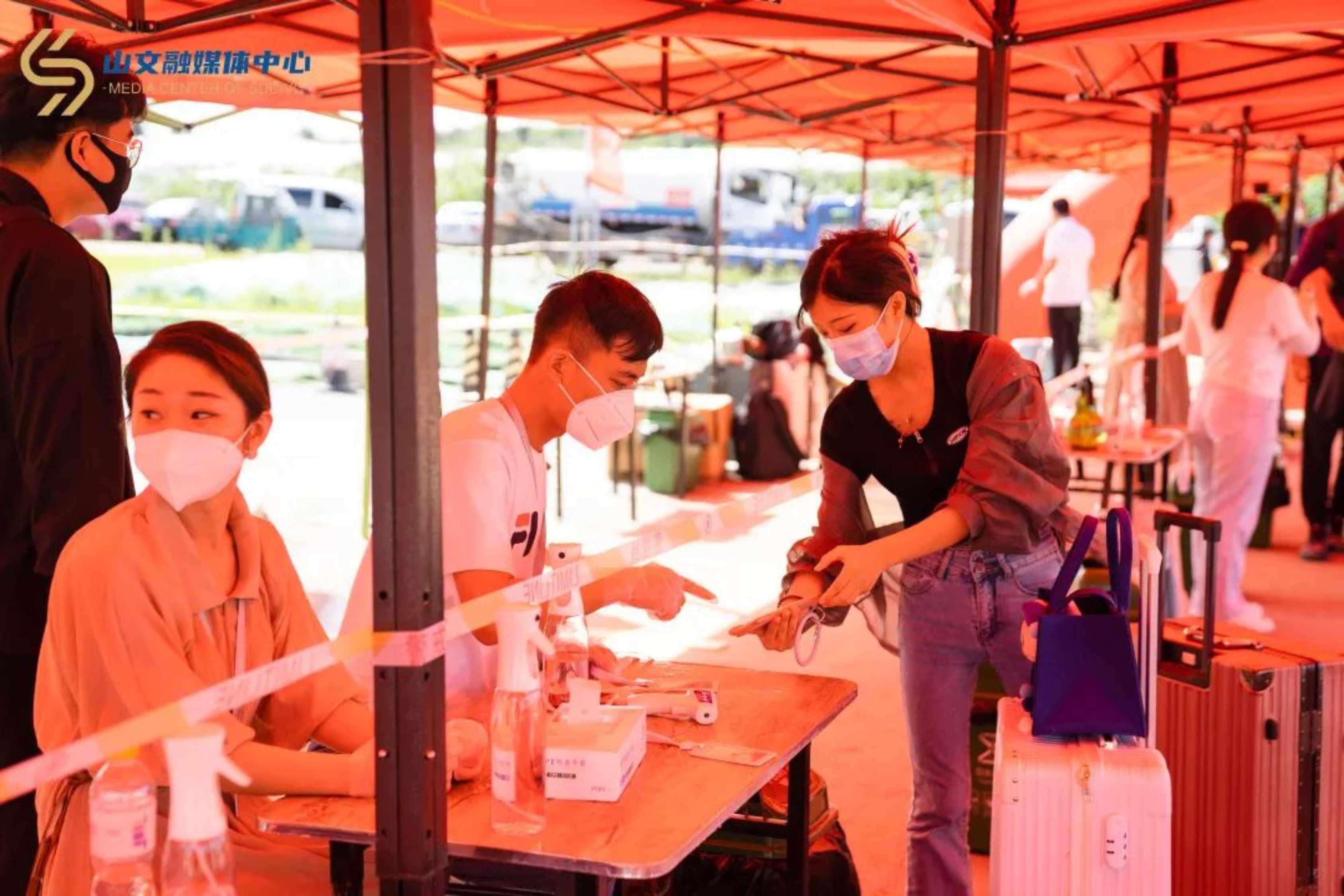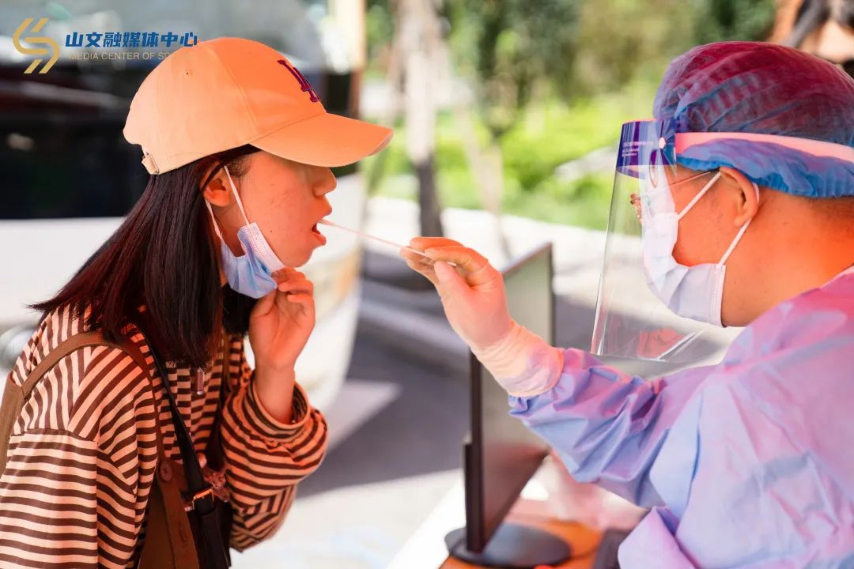 返校的同学们认真落实疫情防控要求,进校更换口罩,在学校入口处出示健康码、行程码、核酸报告,检测体温,行李消杀……经过一系列防疫操作后,依次有序进入校园进行核酸检测,领取核酸检测贴纸。