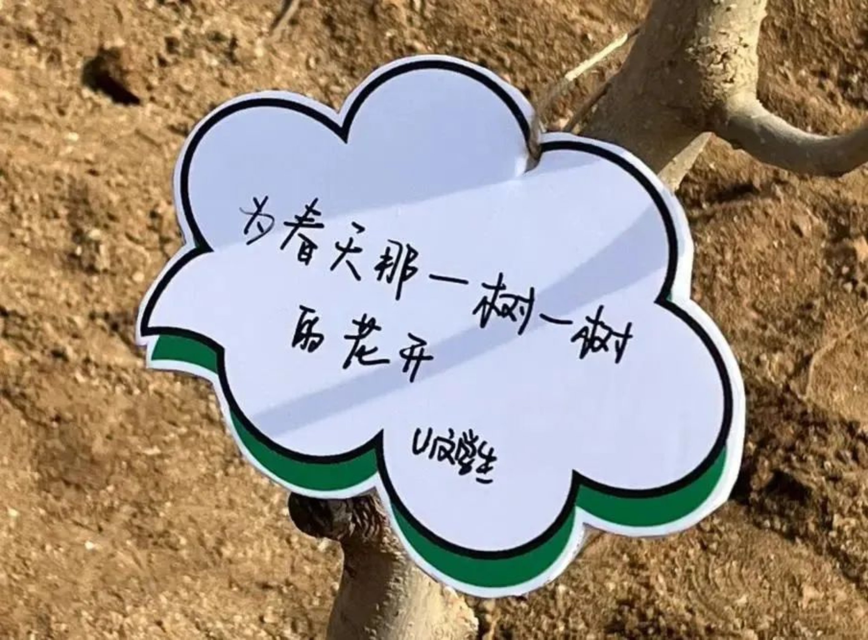 “认领一棵树,写上你的名字和想对“它”说的话,未来,无论你在哪,都有一棵山文树在陪你长大……” 传媒学院、智能科技学院等二级学院,还开展了认领树木的活动,提高了同学们爱护花木、珍惜绿色的责任心,也表达了山文学子对校园的热爱和对美好未来的向往。