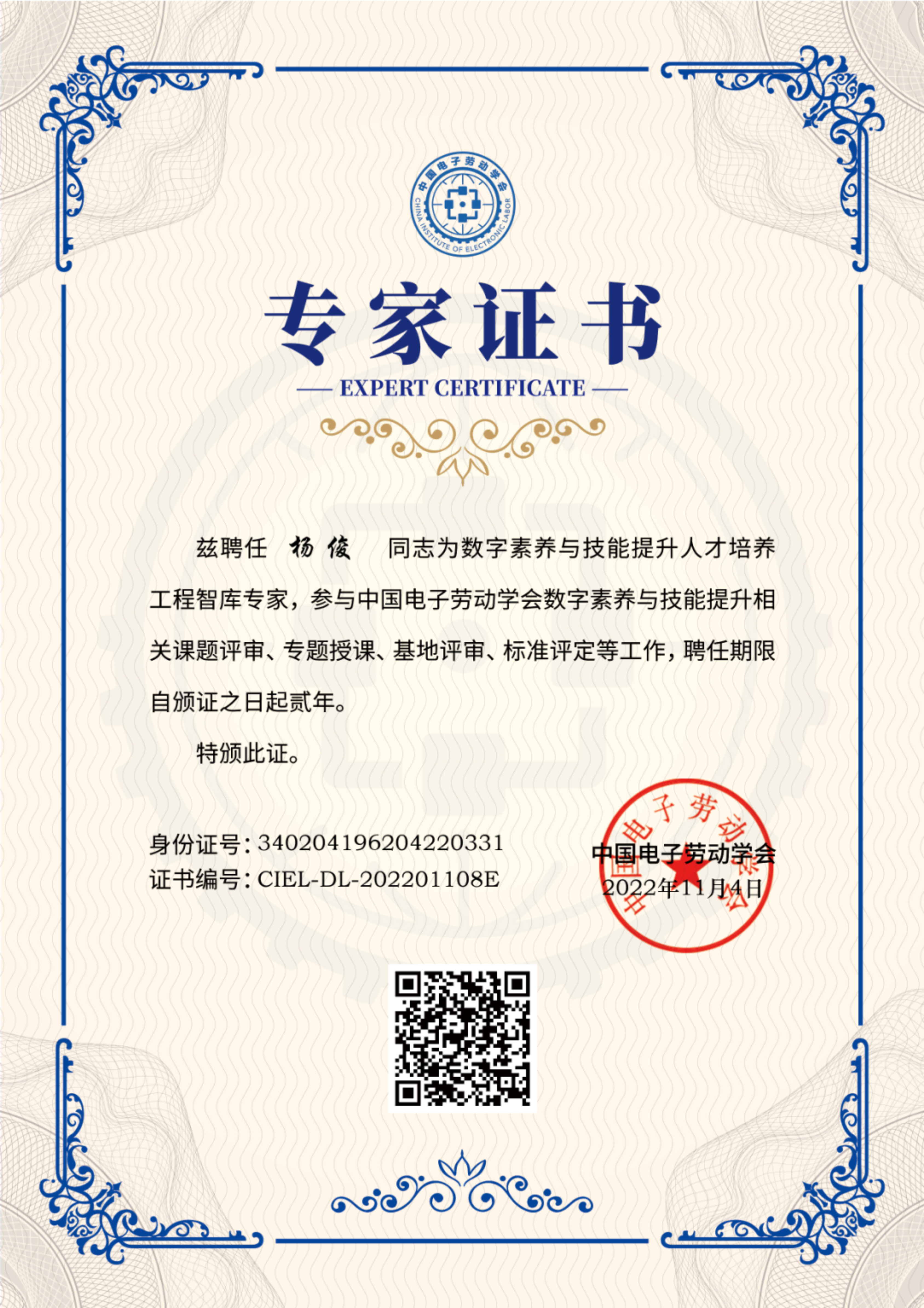 必威betway西汉姆杨俊教授入选数字素养与技能提升人才培养工程智库专家