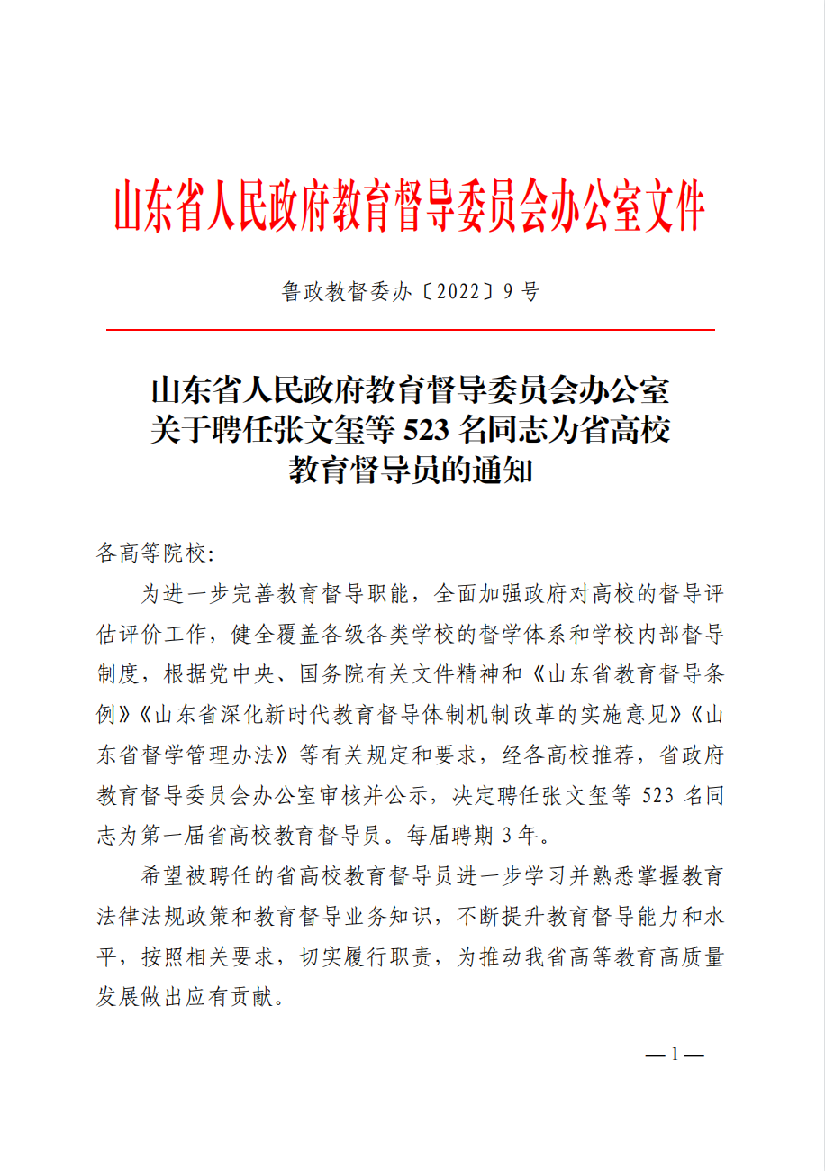 必威betway西汉姆杨民刚、姜雪松两名同志被聘为山东省第一届高校教育督导员