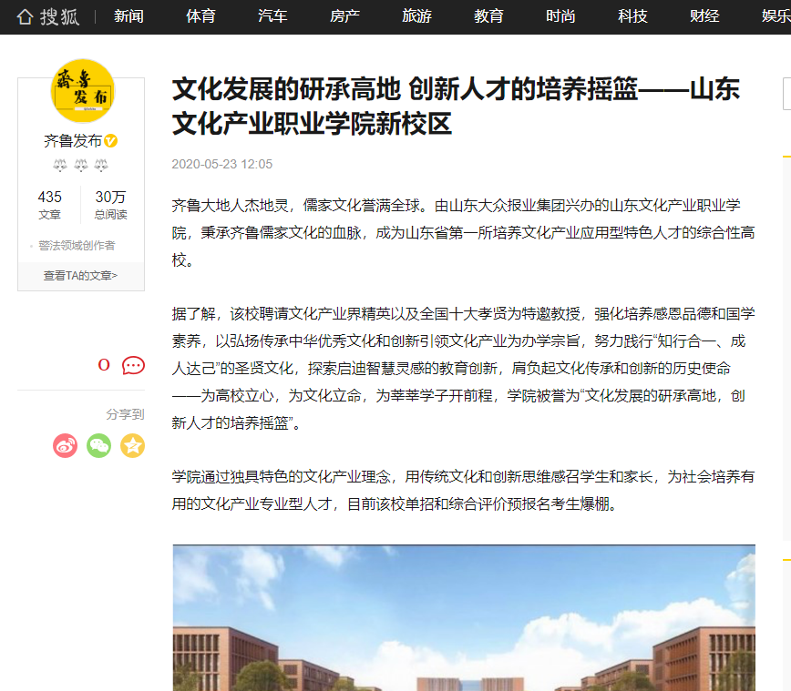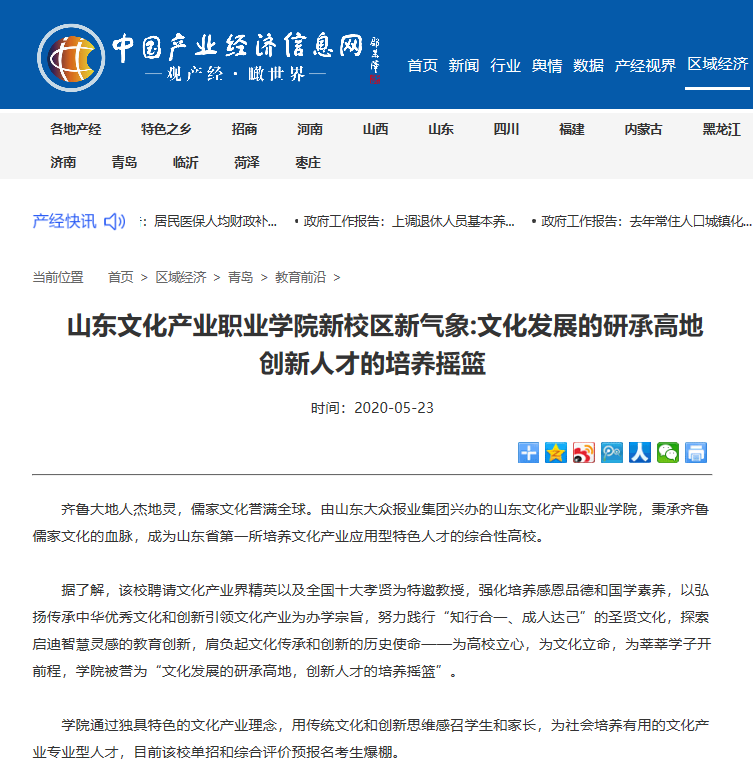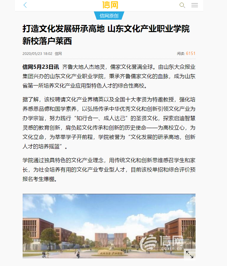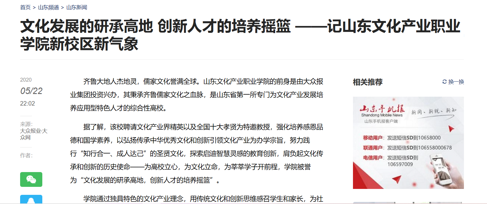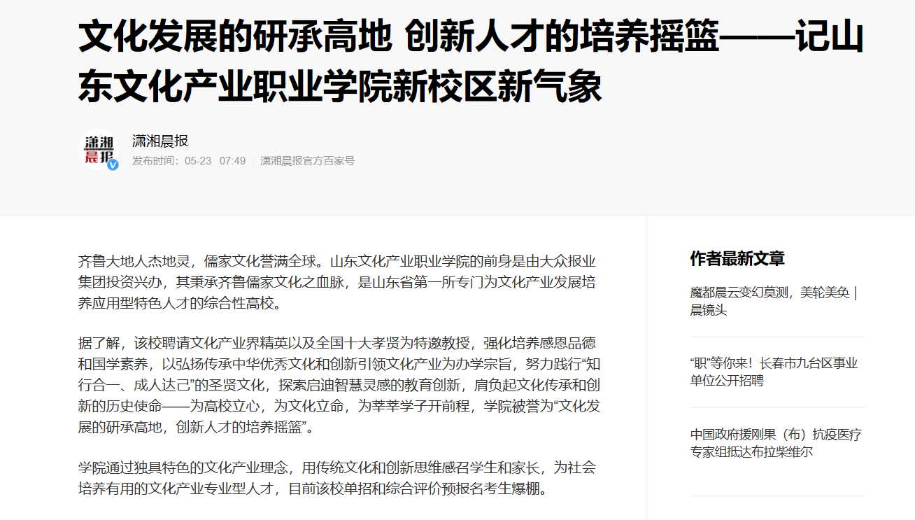 连日来,新华网、人民日报、腾讯新闻、搜狐新闻、中国产业经济信息网、大众网、潇湘晨报、海报新闻、山东教育卫视、“山东高考一点通”官微等多家主流媒体先后报道山文新校区,聚焦山文,宣传和报道必威betway西汉姆专业特色和办学理念。