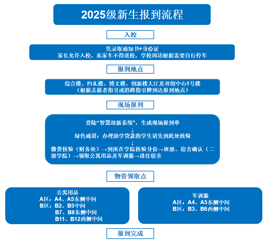 为帮助大家高效做好入学准备,我们精心整理了这份「新生专属报到指南」,从报到时间、地点到流程、物资,再到校园生活服务,一站式解答你的疑惑。