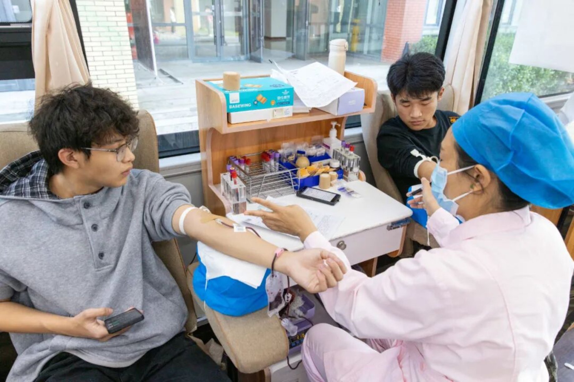 活动期间,献血车前排起了长队,构成了一道温暖而亮丽的风景线。在志愿者和血液中心医护人员的悉心引导下,师生们有序地进行登记、体检、初筛、采血和休息。整个流程秩序井然,充满了温情与感动。