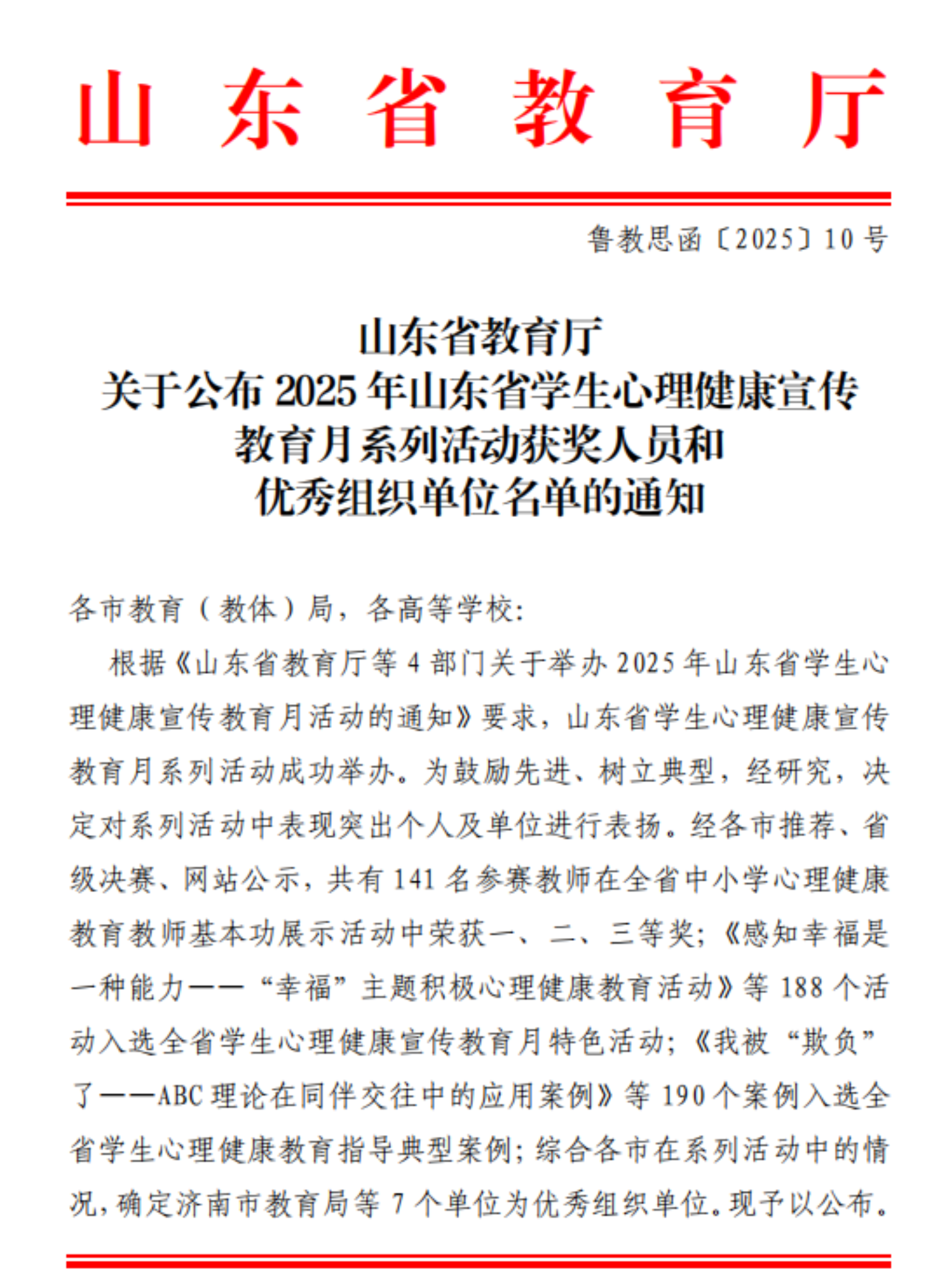 2025年“山东省学生心理健康宣传教育月”系列活动