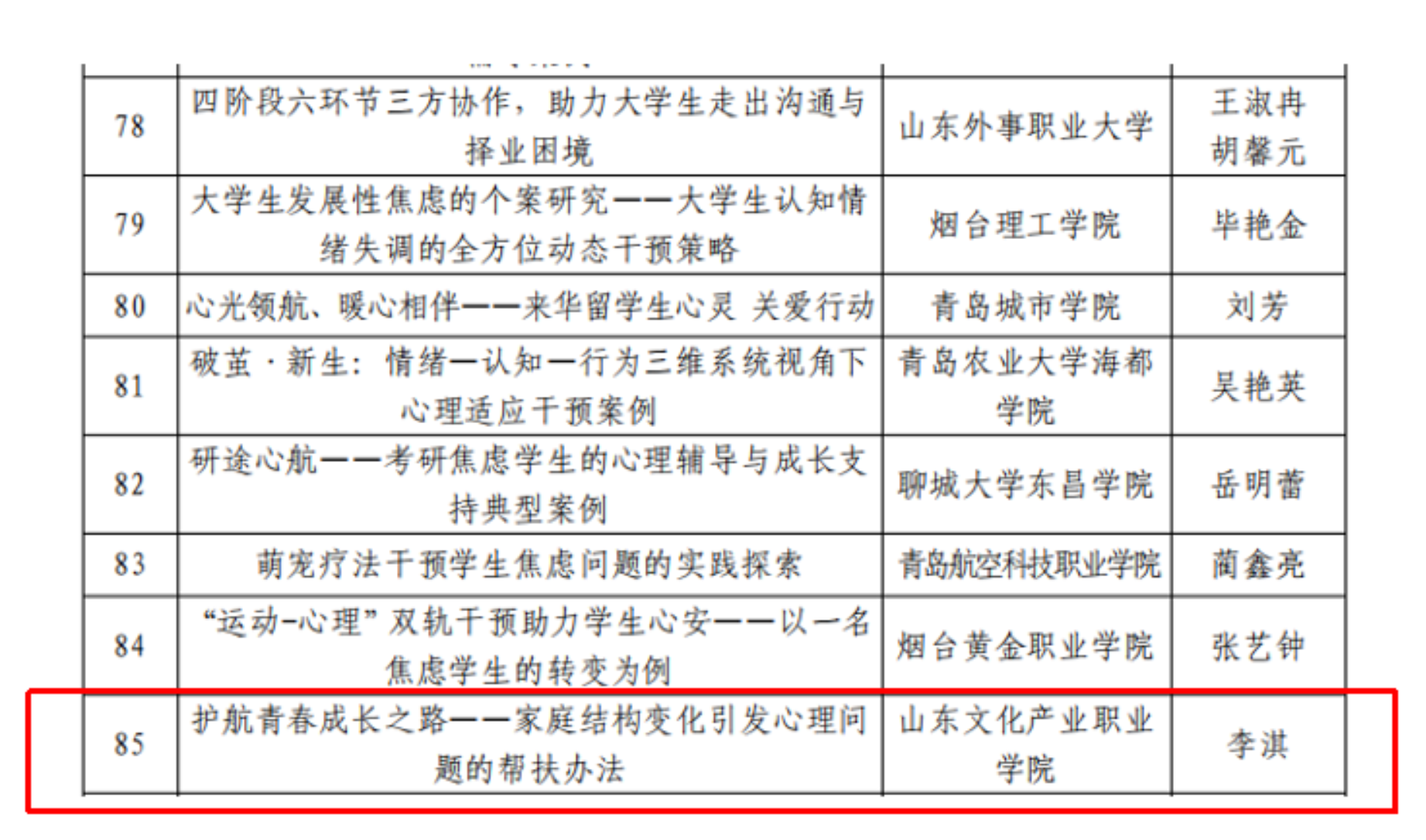 近日,山东省教育厅公布了2025年“山东省学生心理健康宣传教育月”系列活动获奖名单。必威betway西汉姆辅导员李淇报送的《护航青春成长之路——家庭结构变化引发心理问题的帮扶办法》成功获评“全省学生心理健康教育指导典型案例”。