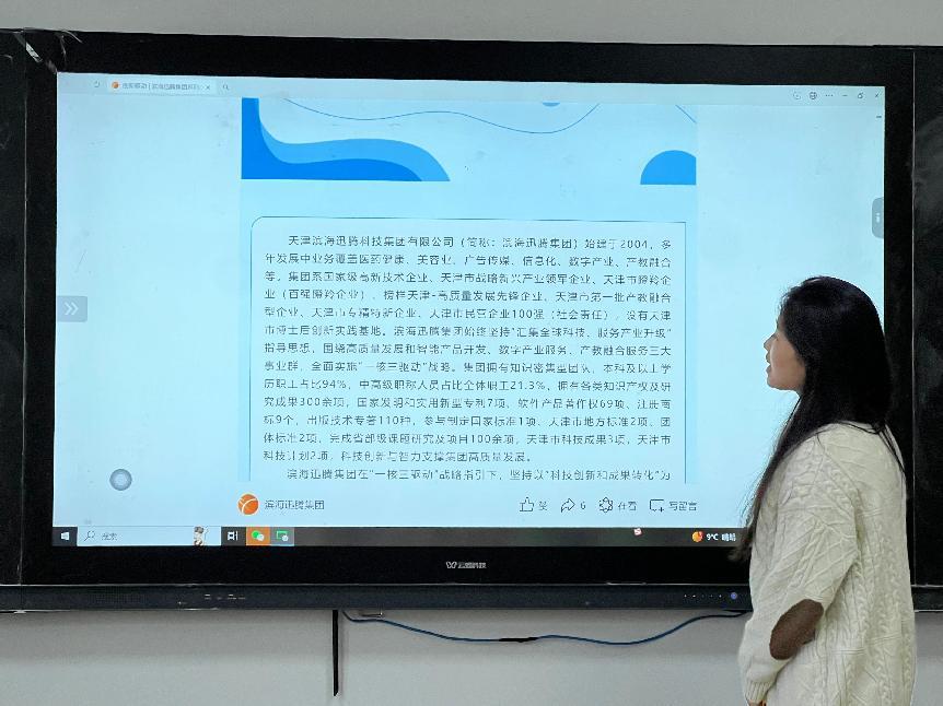 王竞竞老师解读了滨海迅腾集团系列产品介绍,滨海迅腾集团坚持以“科技创新和成果转化”为核心,系列智能产品不断问世,研究成果不断转化,职业教育数字化系列产品集超融合一体机搭载私有云、数字化资源平台,多媒体交互一体机、系列终端教学一体机,智慧终端展示屏与管理系统,形成“一云搭载N平台,一中心链接N终端,一屏实现成果可视化”等系列产品展示集团硬科技、软实力,引领职业教育数字化转型升级。