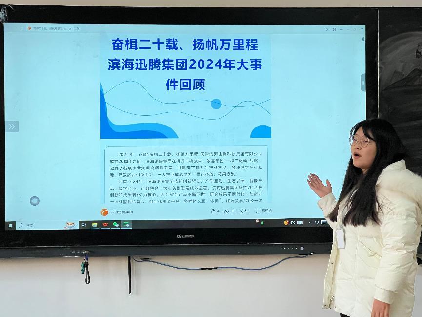李彩霞老师为我们解读了“奋楫二十载、扬帆万里程”滨海迅腾集团2024年大事件回顾,回首2024年,滨海迅腾集团依托创新驱动、产学互动、生态发展,智能产品、数字产业、产教融合三大业务群发展成效显著。