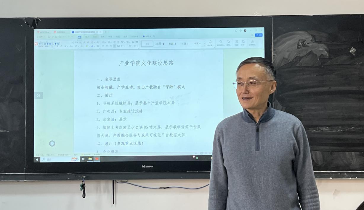 随着双创中心二号楼的落实,其职场文化设计也需要跟进,郝雷院长带我们分析了产业学院文化建设思路,首先,主导思想是校企相融、产学互动。突出产教融合“深融”模式。我们双创中心二号楼的设计要突出企业文化和山文文化的融合。