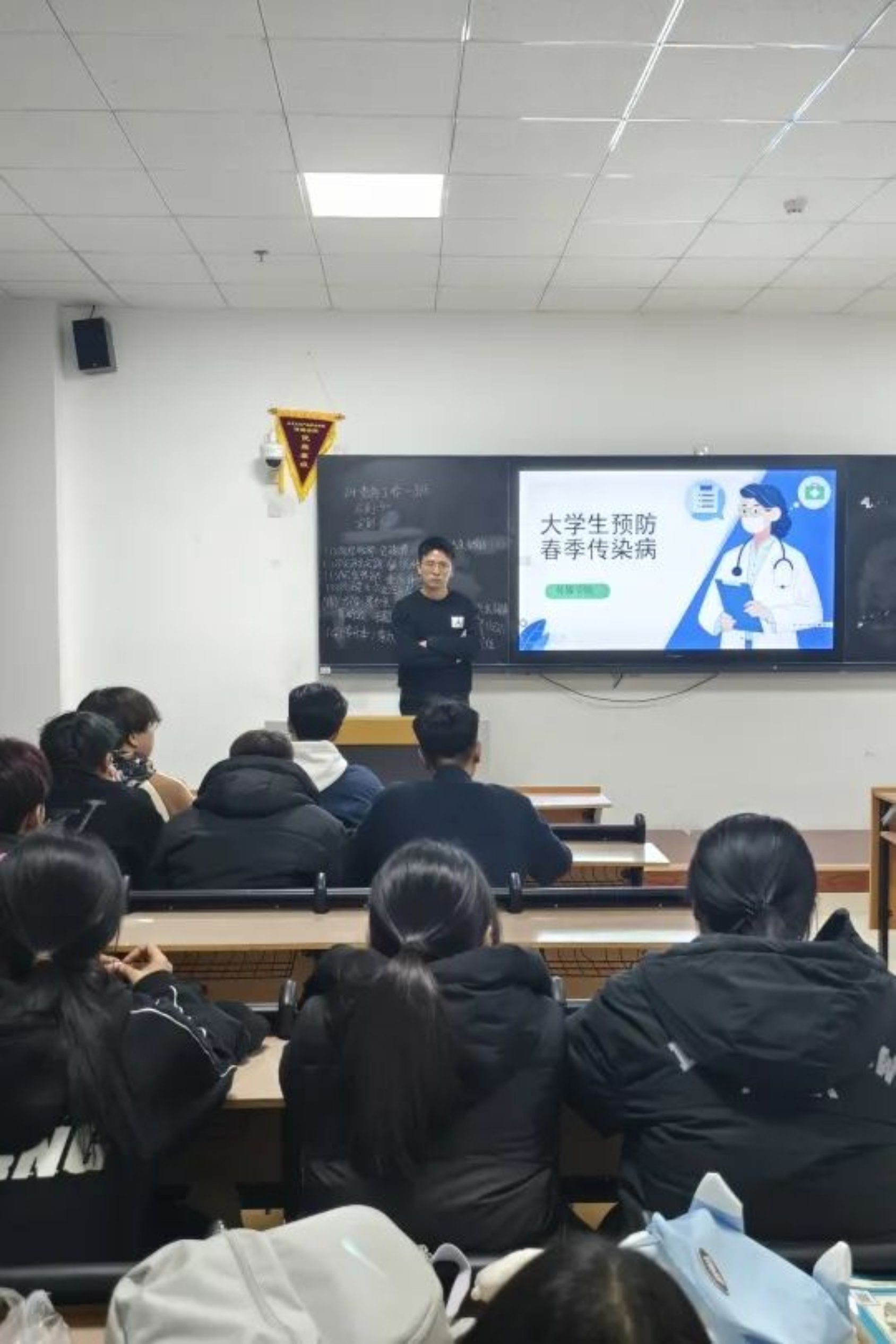 班会上,辅导员们通过PPT讲解,详细地讲解了流感、水痘、诺如病毒等春季常见传染病的症状、传播途径以及预防方法。通过列举身边的实际案例,让学生们深刻认识到疾病传播的潜在风险和传染病防控的重要性。