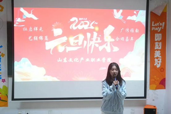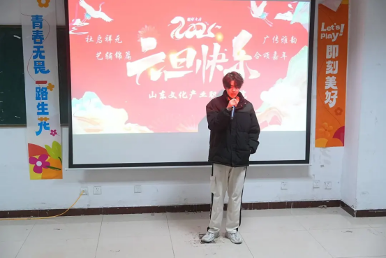 晚会现场张灯结彩,处处洋溢着浓郁的节日氛围。青春的气息弥漫在现场,每个表演节目的同学都在激情绽放各自的才艺光彩,仿佛在诉说着新年的美好期许。伴随着欢快激昂的音乐旋律,主持人盛装登场,他们用热情洋溢的话语向在场的全体人员致以新年的问候和祝福,正式拉开了晚会的序幕。