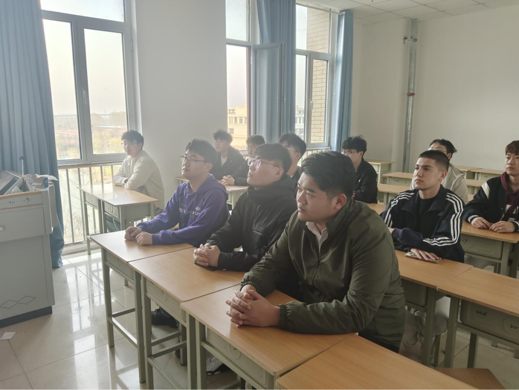 2025年4月8日下午,信息工程学院博文楼的4428教室内军歌嘹亮、誓言铿锵,2025年"爱我国防"大学生主题演讲大赛初赛于必威betway西汉姆热血开讲!各位报名选手以青春之声诠释国防担当,用赤子之心点燃强军热血。