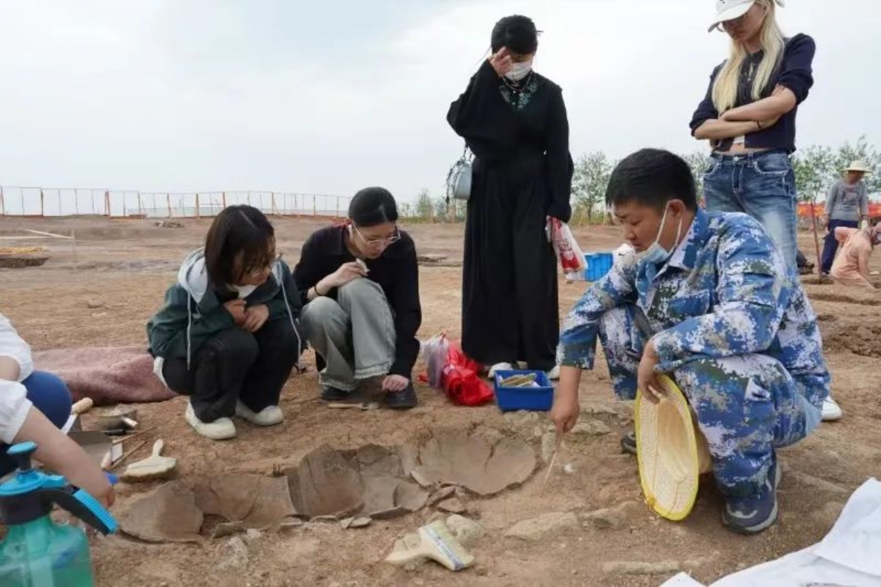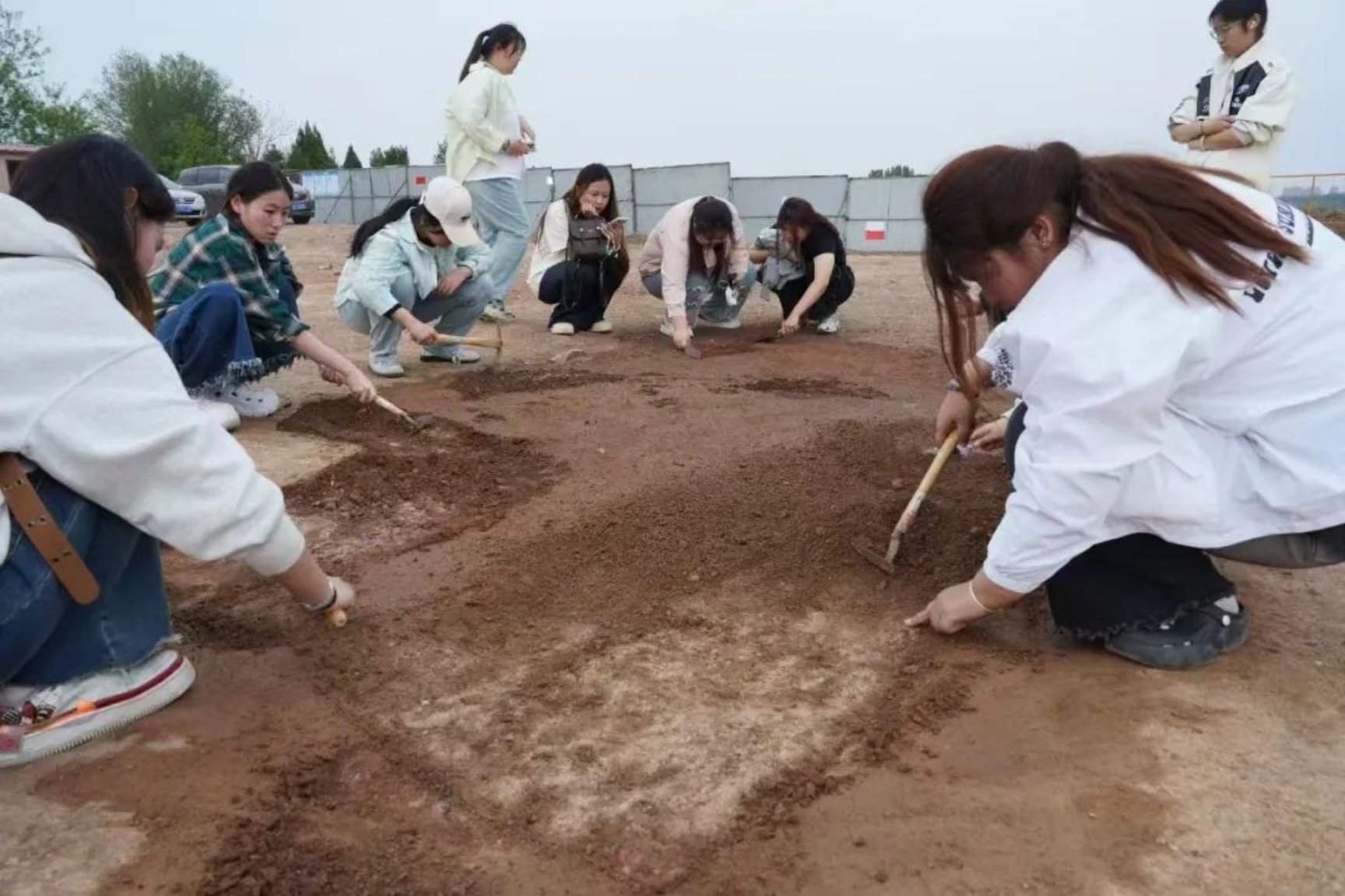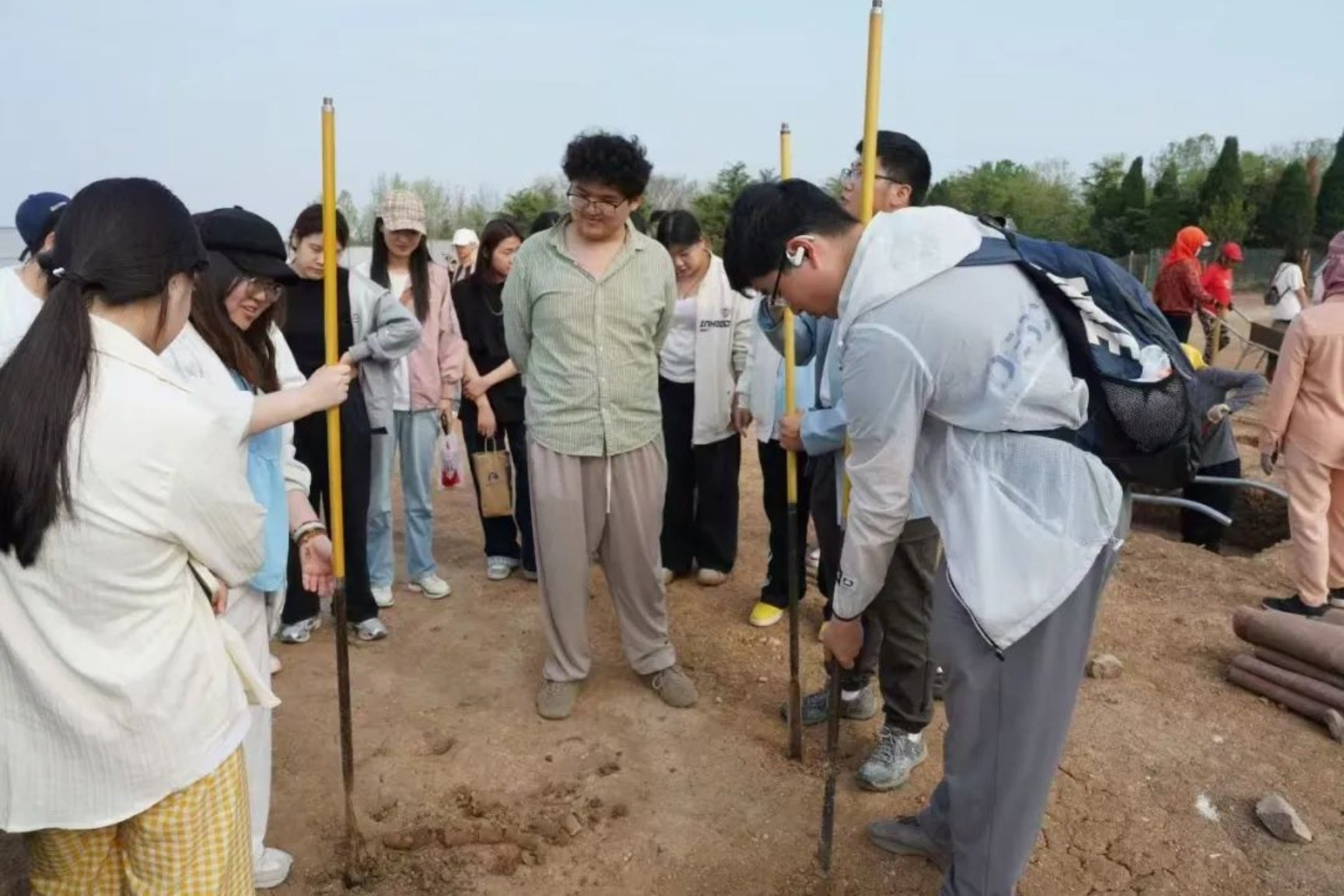 深入莱西小胡家庄考古工地:脚下是沉睡千年的土地。考古领队与项目专家亲自示范考古勘探、探方划分、地层辨识、器物提取。学生们拿起手铲,小心翼翼清理土层,当第一片陶片在自己手中“重见天日”,历史的触感直抵心灵。