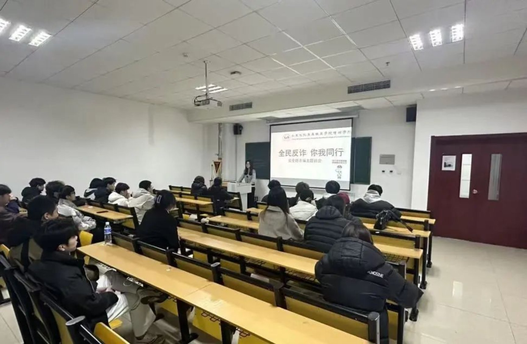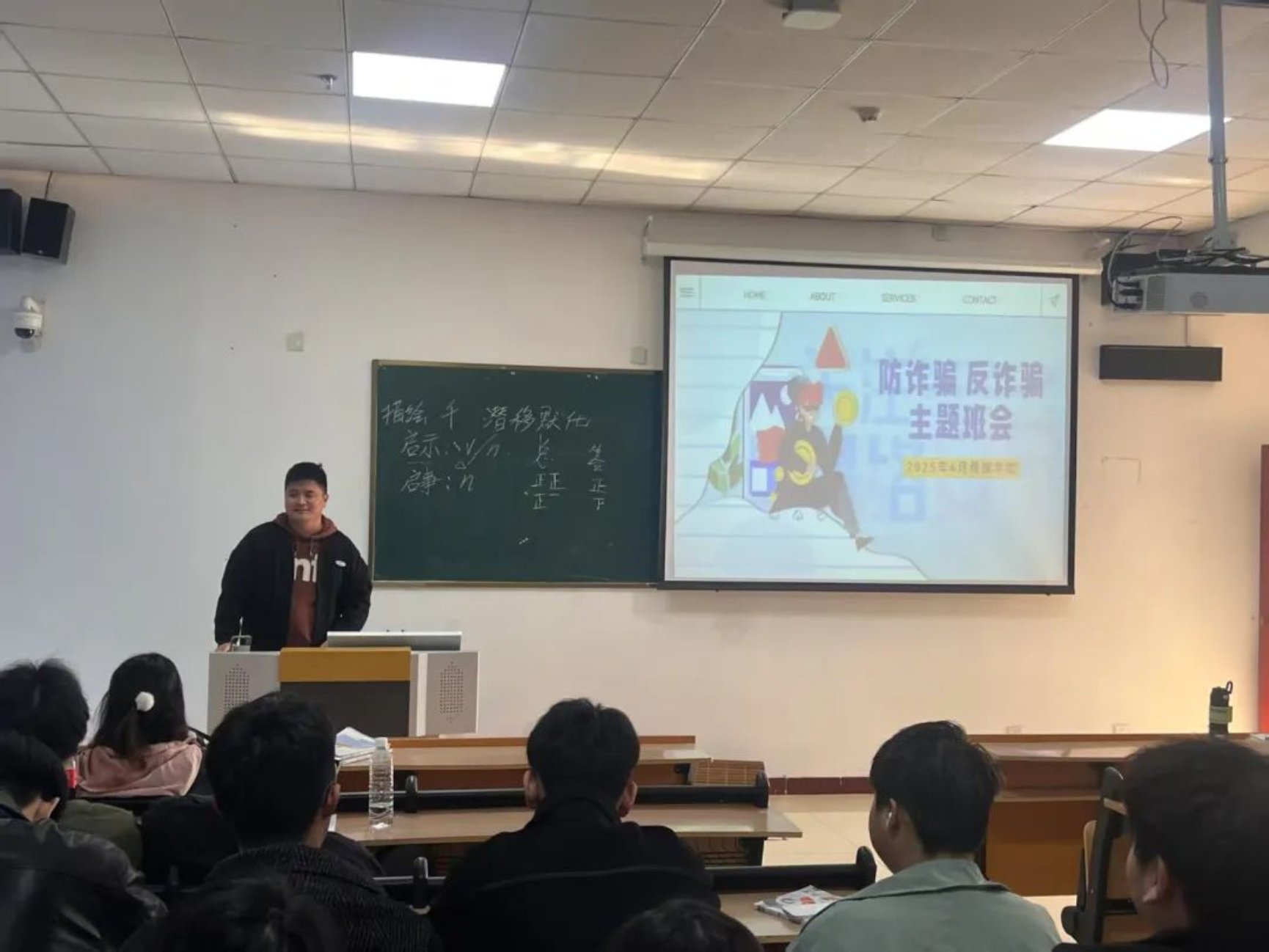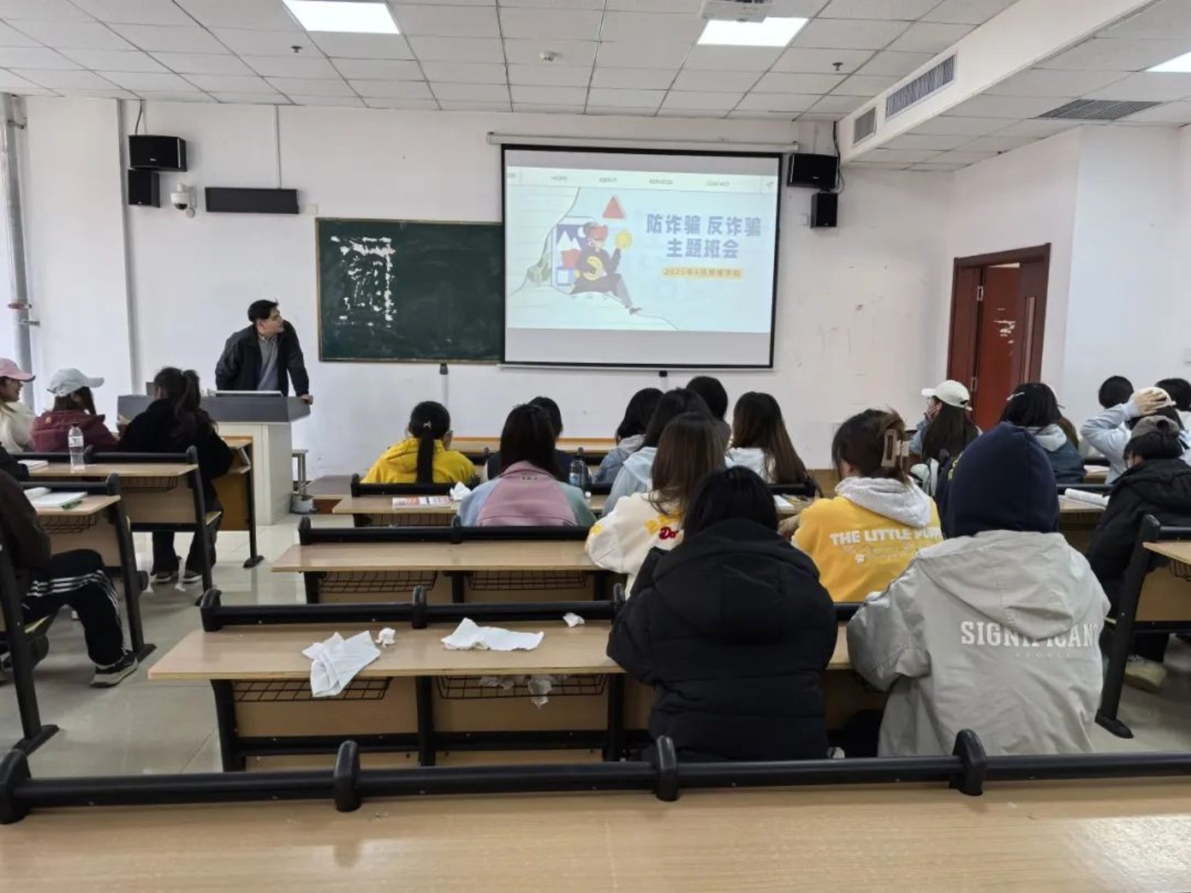 辅导员老师们带着学生们开展反诈知识宣讲,通过播放防诈骗宣传视频、讲解真实案例、互动问答等形式,详细介绍了常见的诈骗手段,并给出了相应的防范措施。