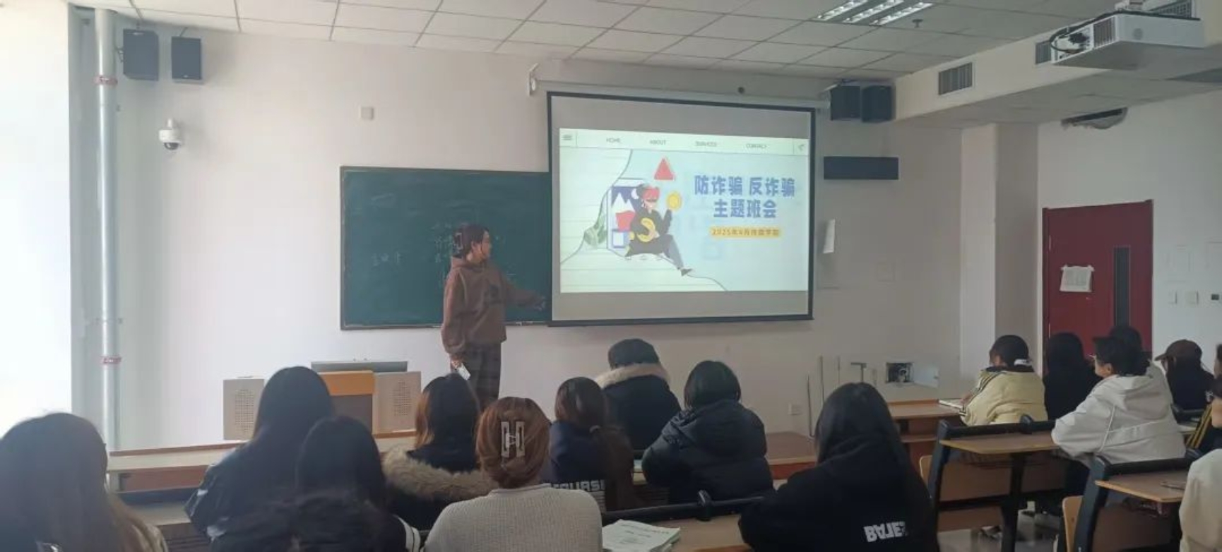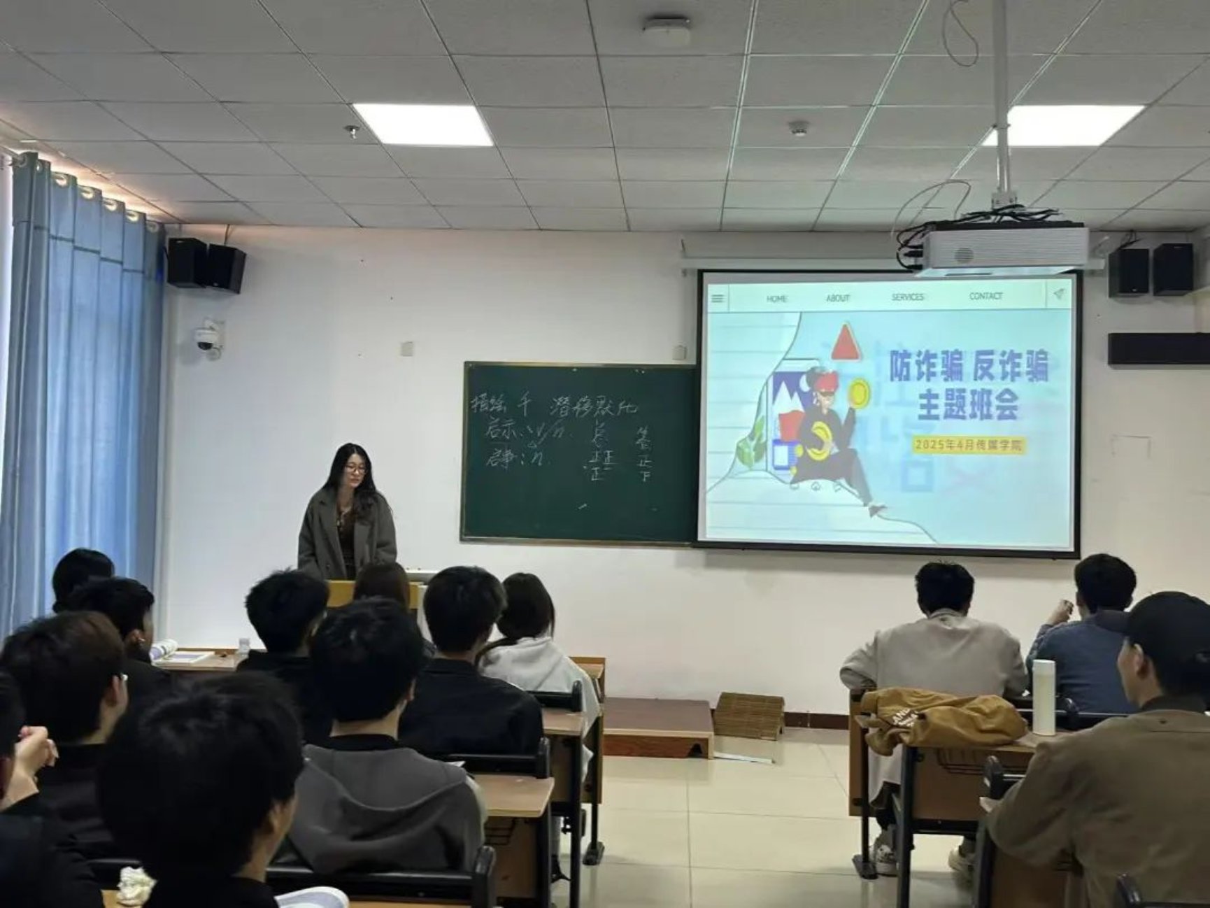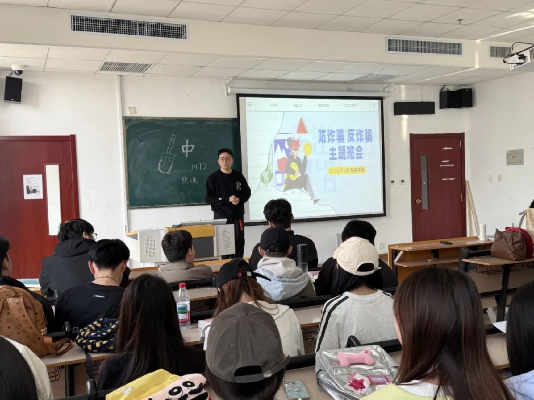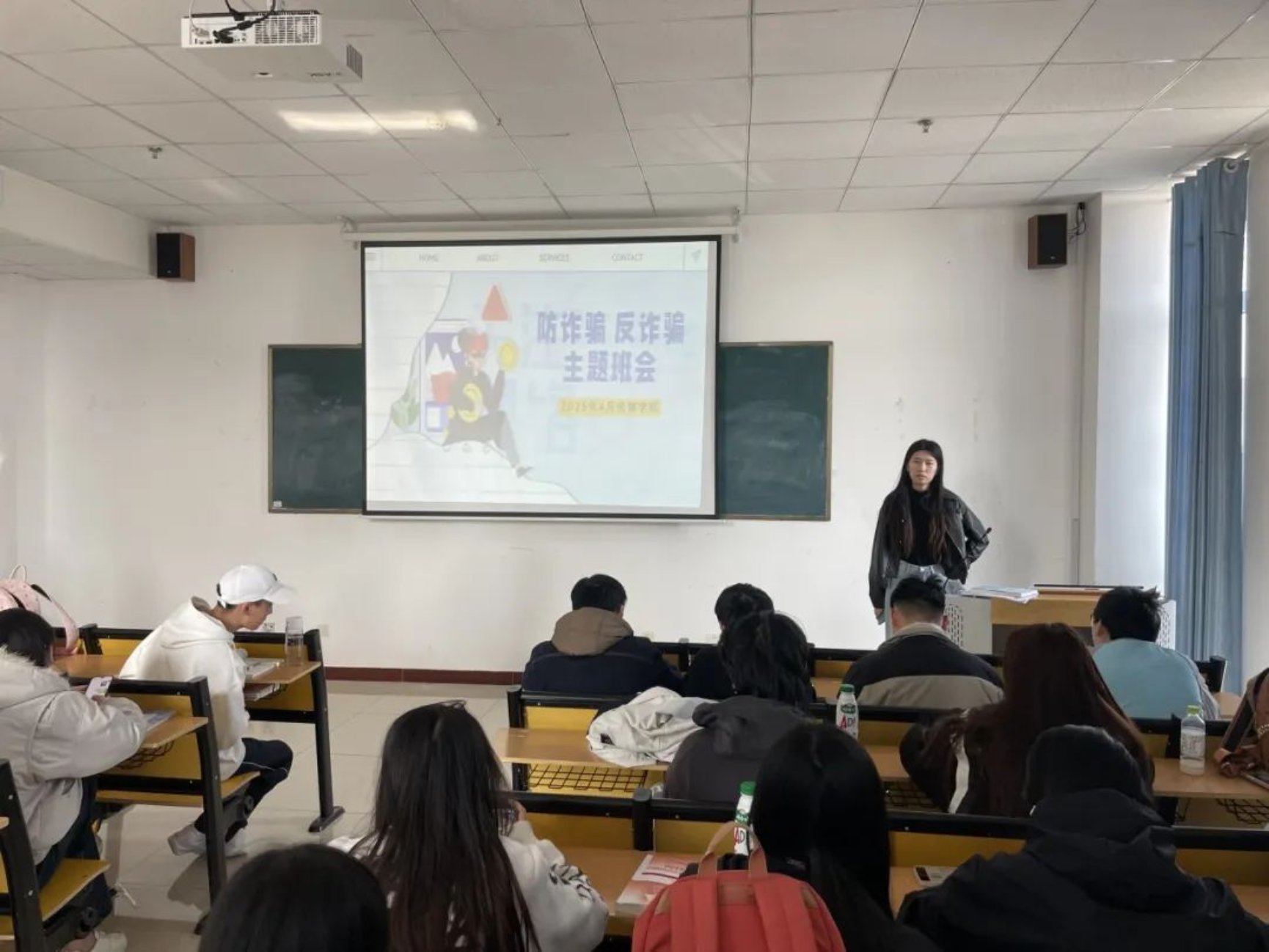辅导员老师们带着学生们开展反诈知识宣讲,通过播放防诈骗宣传视频、讲解真实案例、互动问答等形式,详细介绍了常见的诈骗手段,并给出了相应的防范措施。